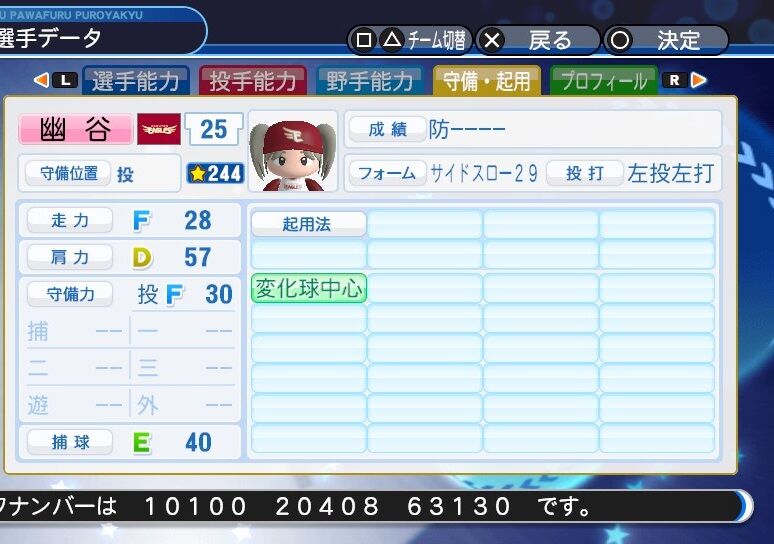 2019年11月26日 幽谷 霧子 パワプロ(2019版) ミステリアスな雰囲気を醸し出す心優しい性格のアイドルです。 ピンチ時と左打者に強いサウスポーサイドスロー投手です。なお、よびかたにゆうこくやきりこが無かったためきりとにしてます。パワター選手データの画像ファイル今日のプロ野球の出来事NPBアワーズで新人王とMVPの発表があり、新人王はセ・リーグはヤクルトの村上選手が、ぱ・りーぐはソフトバンクの高橋礼投手が受賞し、MVPはセ・リーグは巨人の坂本選手が、パ・リーグは西武の森選手が受賞しました。FA宣言のソフトバンクの福田選手がロッテ入りを表明楽天がパドレス退団の牧田投手の獲得を発表 「シャイニーカラーズ パワプロ2018」カテゴリの最新記事 タグ :#投手(リリーフ)#283プロ < 前の記事次の記事 > コメント コメントフォーム 名前 コメント 記事の評価 リセット リセット 顔 星 情報を記憶 コメントを投稿する