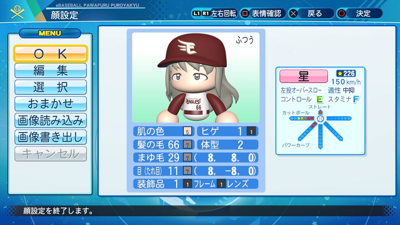ノビのある速球とキレのあるカットボールが武器のリリーフ投手です。以前作成したものはこちらから。(ナックルカーブからパワーカーブに変更しました。)