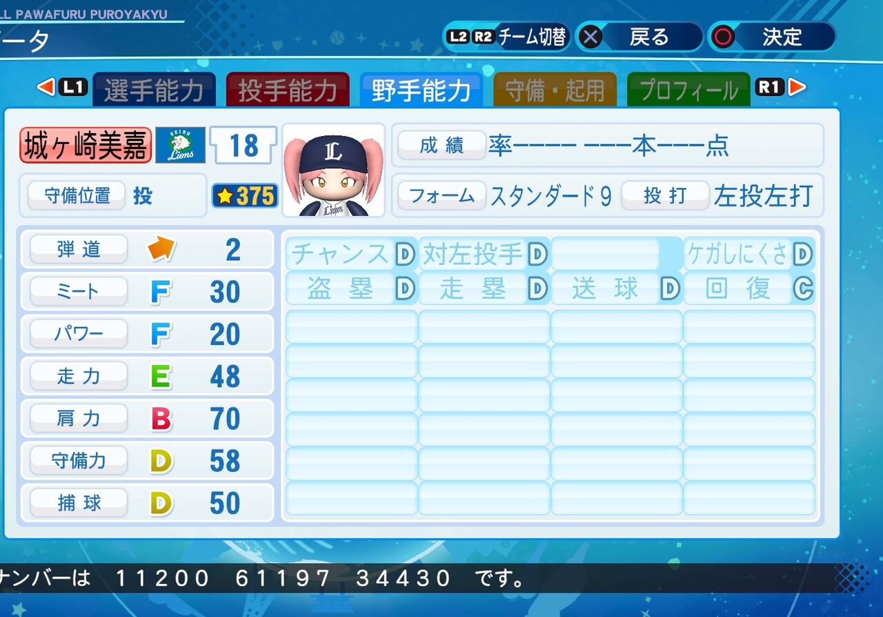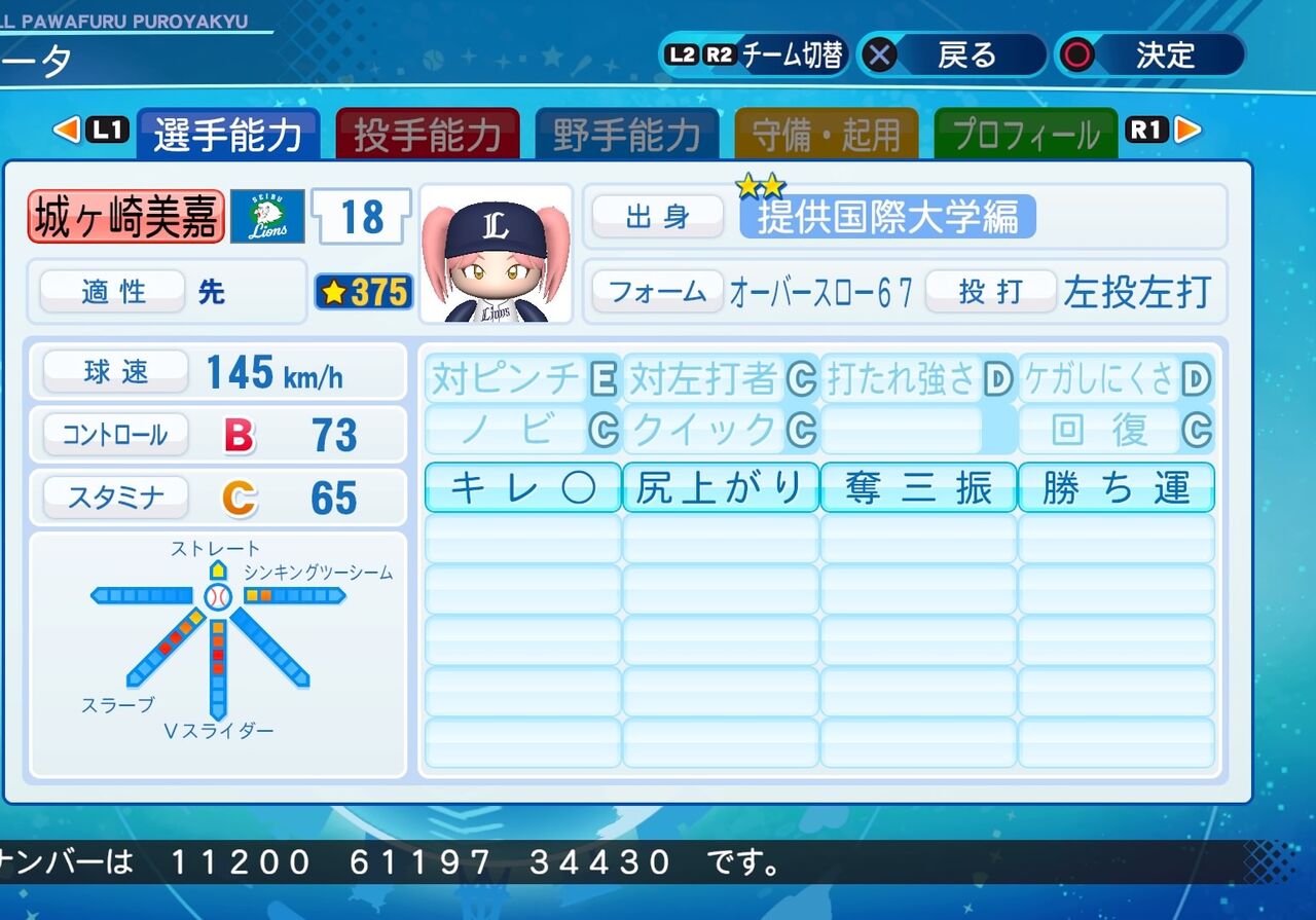 コントロールが高めのバランスのいい先発投手です。以前作成したものはこちらから。