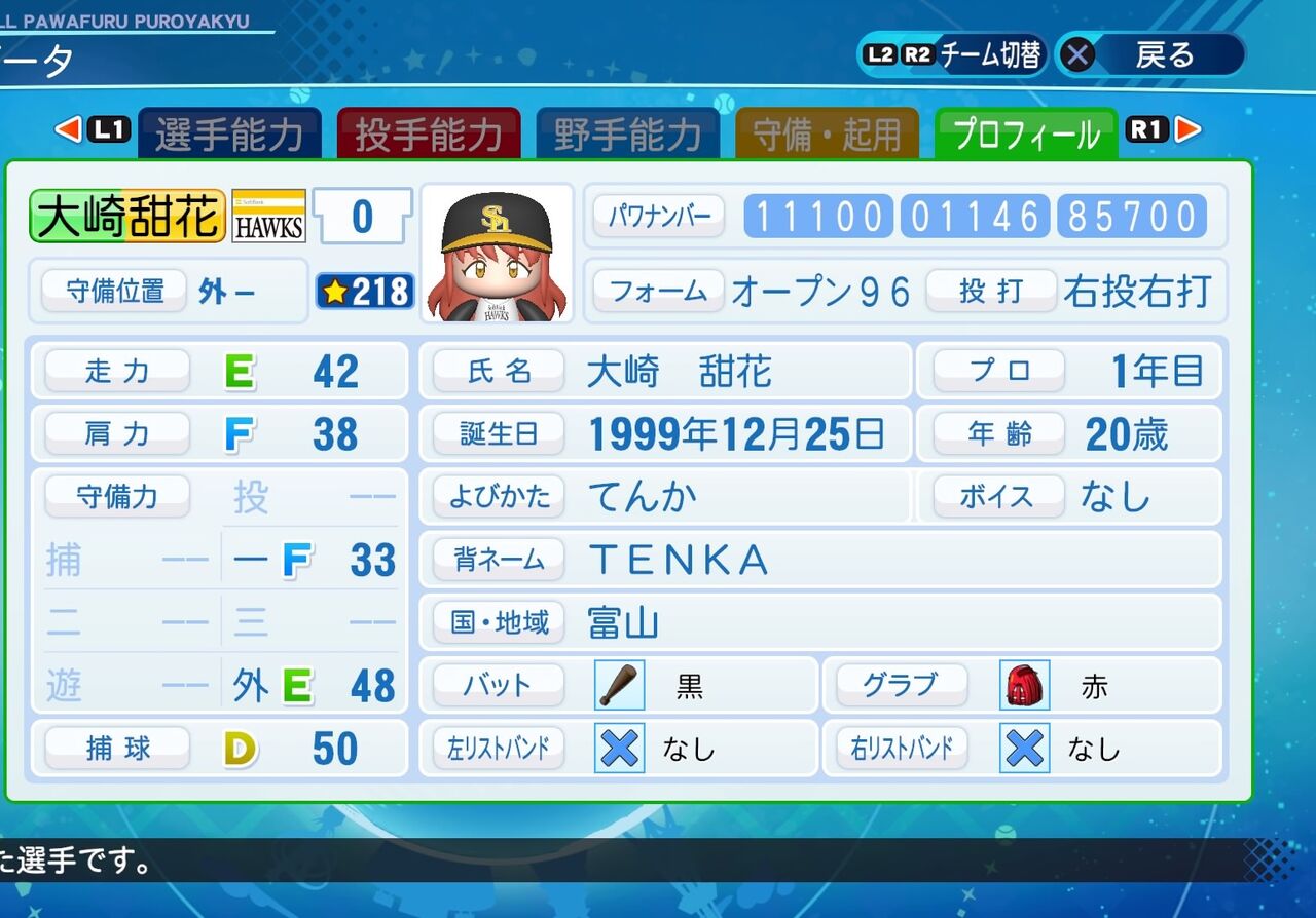ミートがやや高く特殊能力が多めの外野手です。また、成長タイプは晩成型にしてます。以前作成したものはこちらから。(野手に変更しました。)