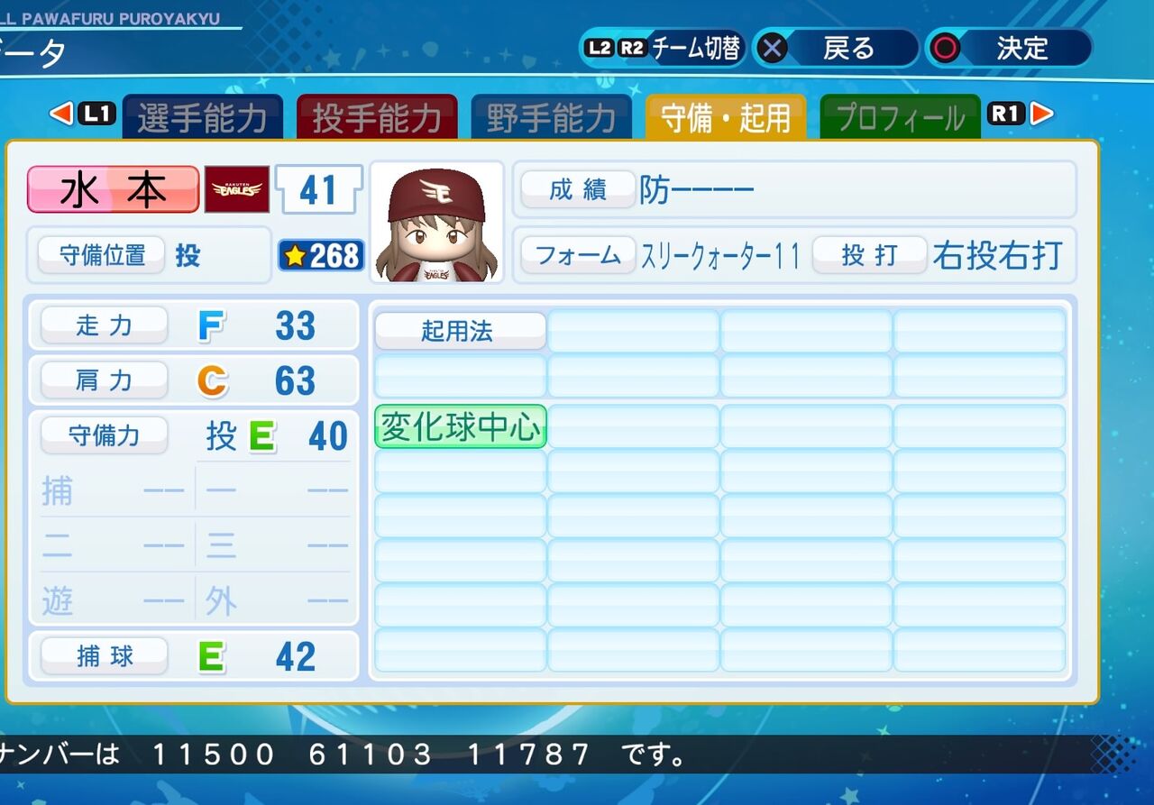 2021年01月08日 水本 ゆかり パワプロ2020版 フルートが趣味の清楚系アイドルです。 マイナス特殊能力はやや多めだがコントロールが高めのリリーフ投手です。追記(7/23)投球フォーム(2021年度版) 石川(ロッテ)(スリークォーター 99)パワター選手データの画像ファイル追記(7/23) 選手データの画像ファイル(2021年度版) 昨日のeBASEBALL プロリーグで横浜DeNAがセ・リーグ優勝を決めました。おめでとうございます! 「シンデレラガールズ パワプロ2020」カテゴリの最新記事 タグ :#投手(リリーフ)#346プロ#アイマス赤属性 < 前の記事次の記事 > コメント コメントフォーム 名前 コメント 記事の評価 リセット リセット 顔 星 情報を記憶 コメントを投稿する