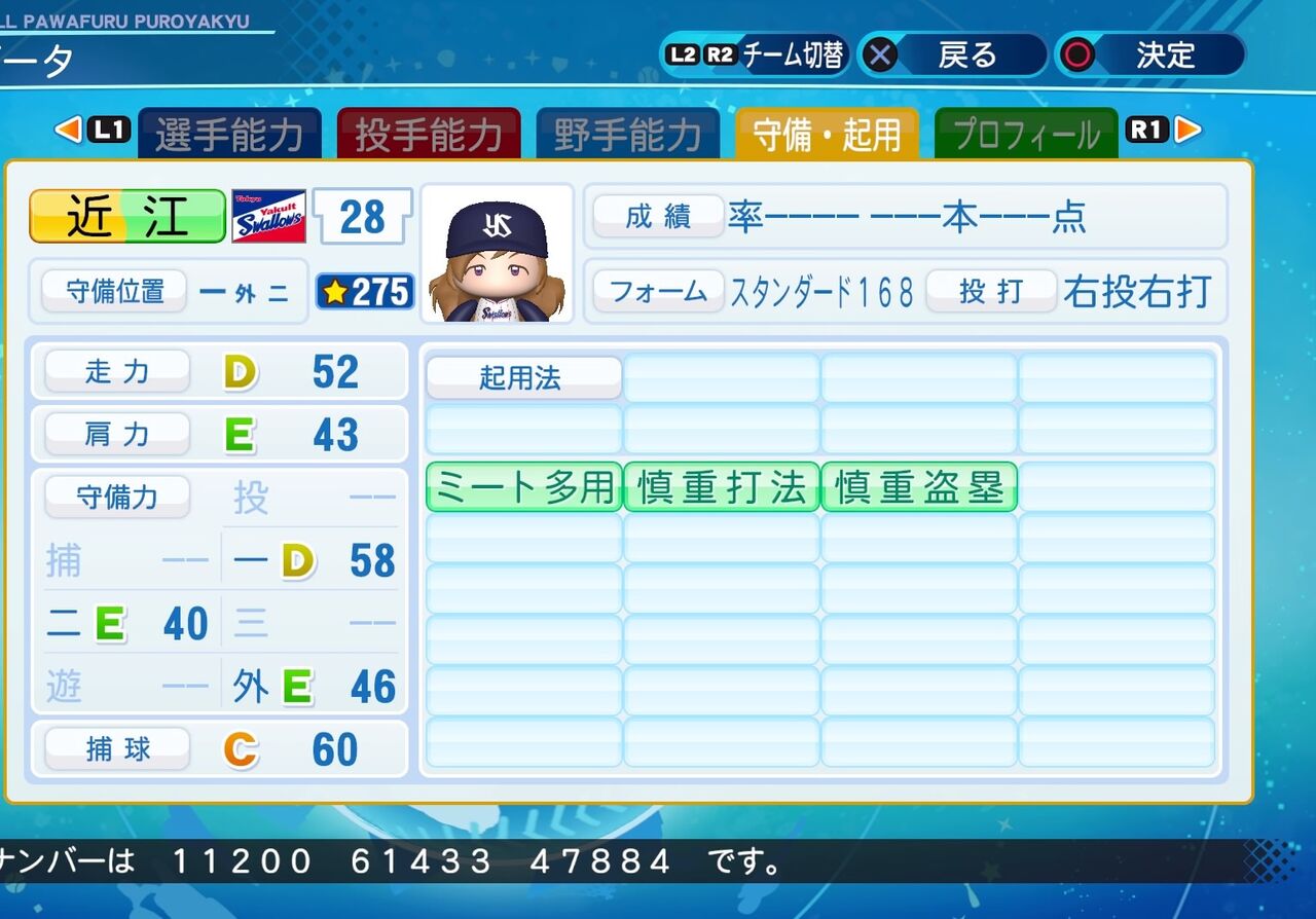 ミートが高く、変化球打ちが得意な一塁手です。以前作成したものはこちらから。