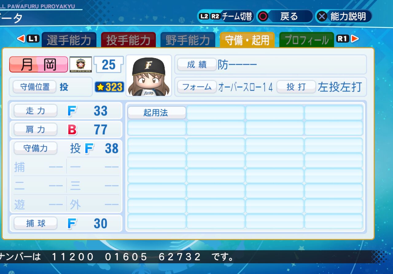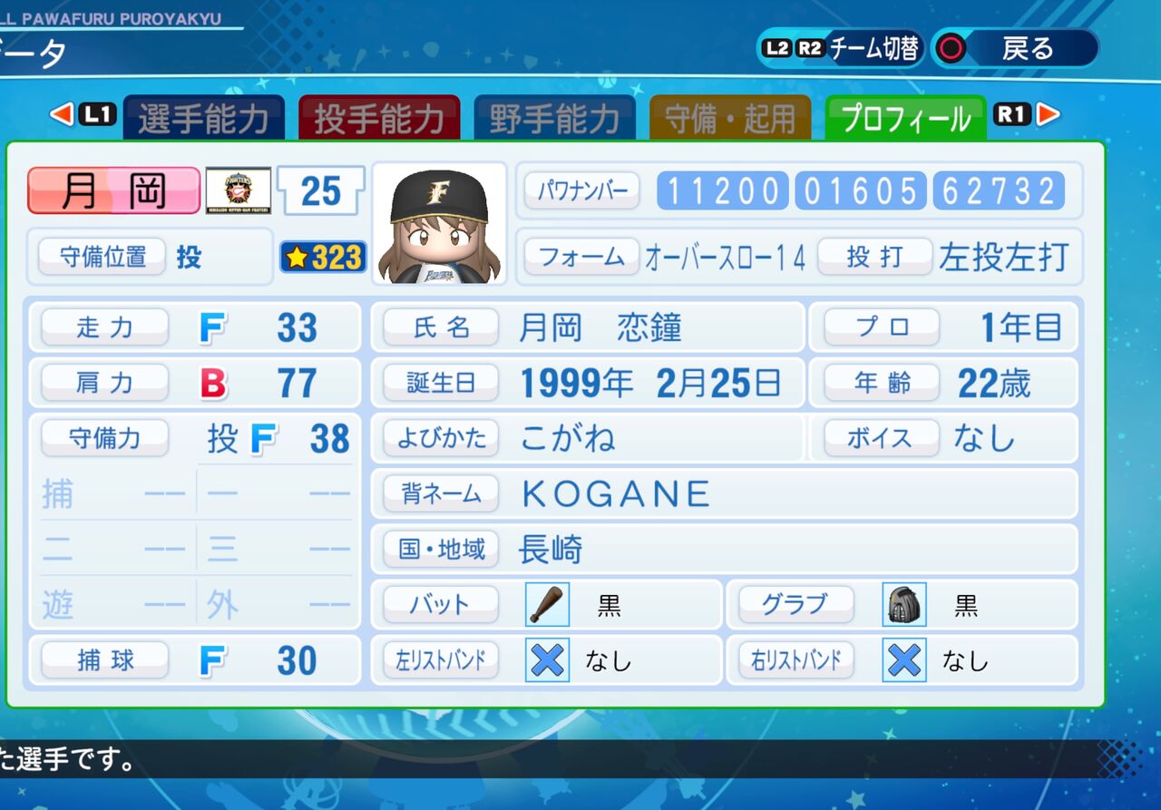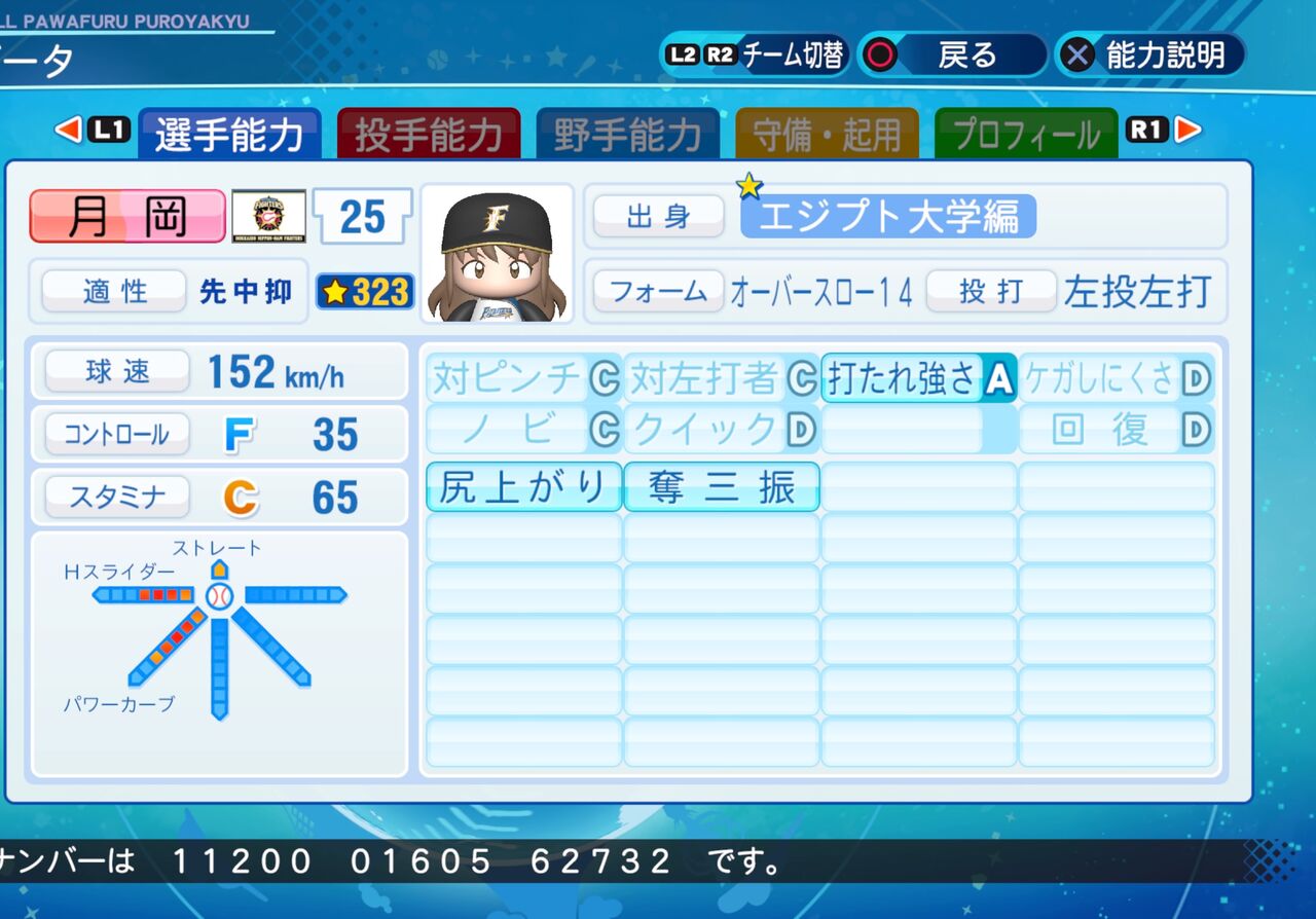 コントロールは低いが、打たれ強く球速が速い左腕投手です。以前作成したものはこちらから。