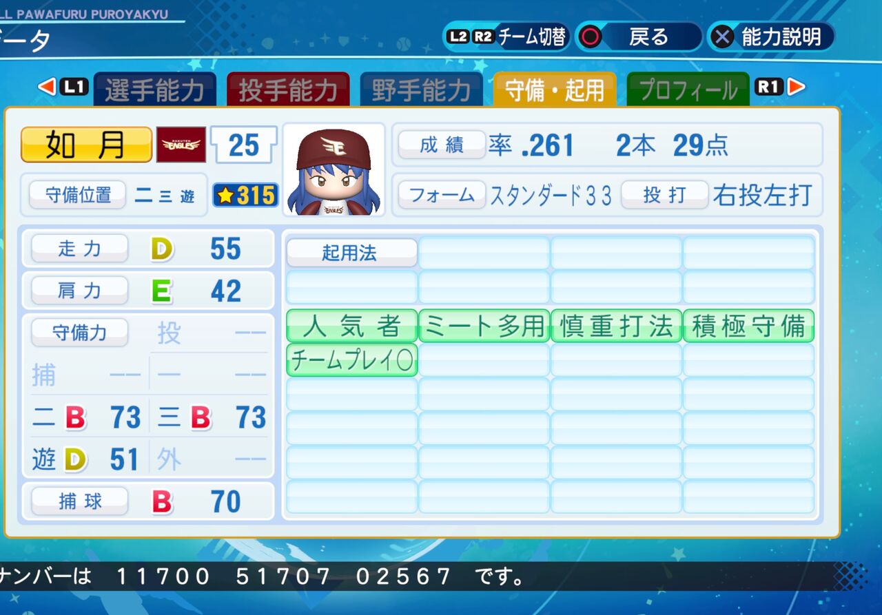 ミートと守備力が高めの二塁手です。以前作成したものはこちらから。
