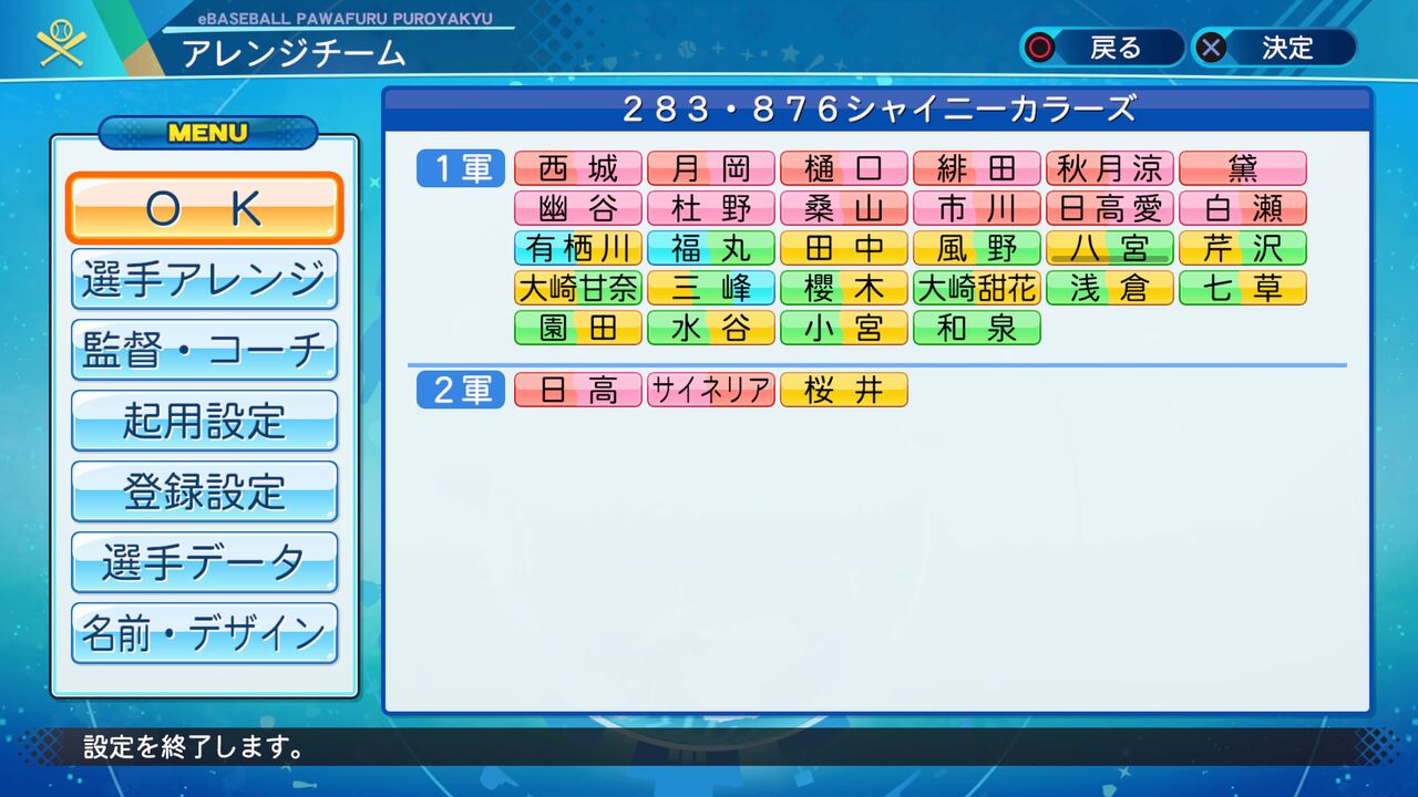 サイネリア、日高舞、桜井を除いたキャラをパワプロ2020版に変更、およびシーズのメンバー追加のためパワナンバーを更新しました。(2021年度版最終更新です。)