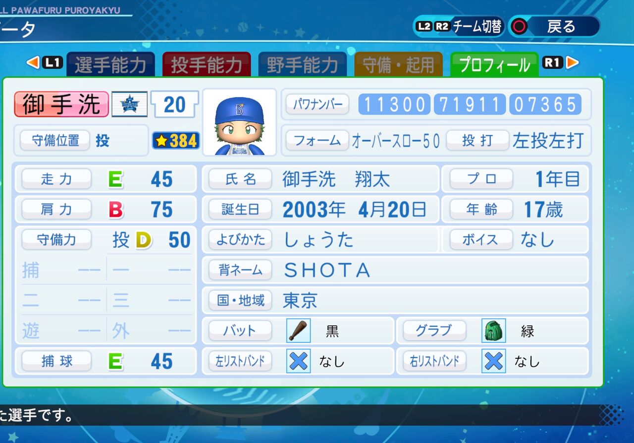 ワンシーム持ちのバランスの取れた左腕先発投手です。以前作成したものはこちらから。