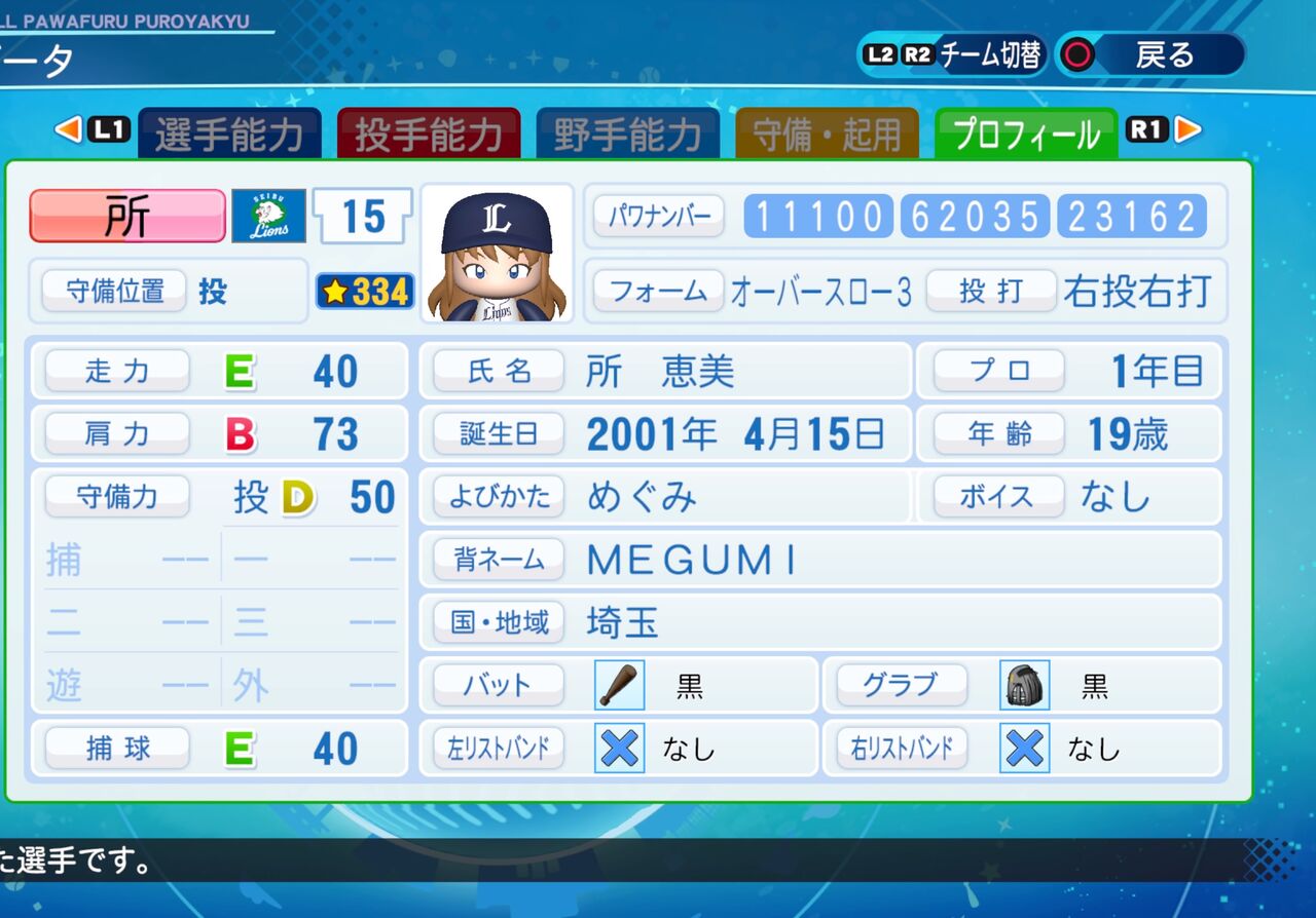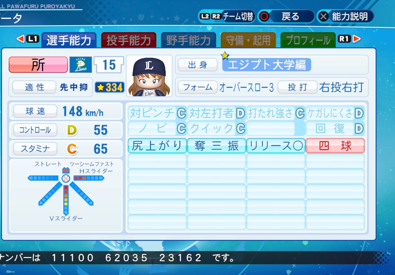 奪三振持ちのバランスのいい能力の投手です。以前作成したものはこちらから。