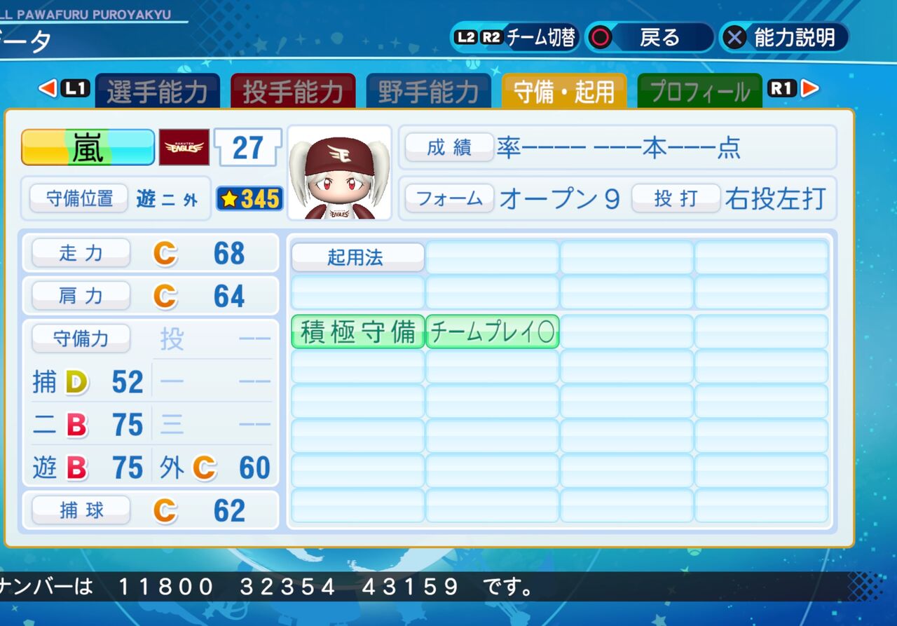 2022年03月17日 嵐 千砂都 パワプロ2020版 昔からダンスを習っており、努力家で献身的な性格のアイドルです。 ミートと守備力が高めの遊撃手です。パワター選手データの画像ファイル 「ラブライブスーパースター パワプロ」カテゴリの最新記事 タグ :#遊撃手#Liella! < 前の記事次の記事 > コメント コメントフォーム 名前 コメント 記事の評価 リセット リセット 顔 星 情報を記憶 コメントを投稿する