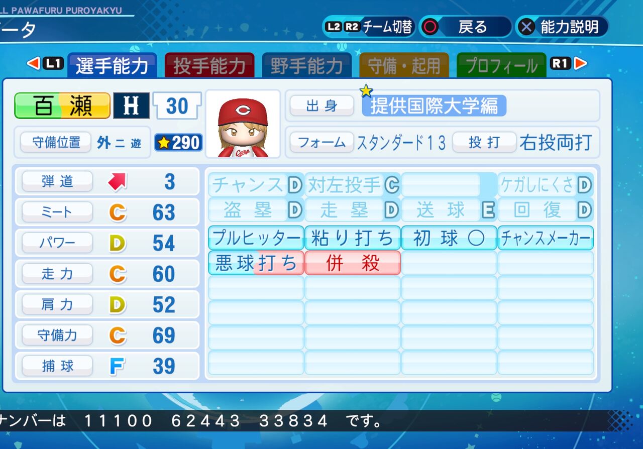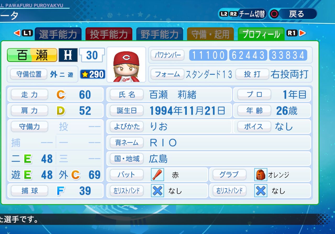 守備力がやや高くプルヒッター持ちの野手です。以前作成したものはこちらから。