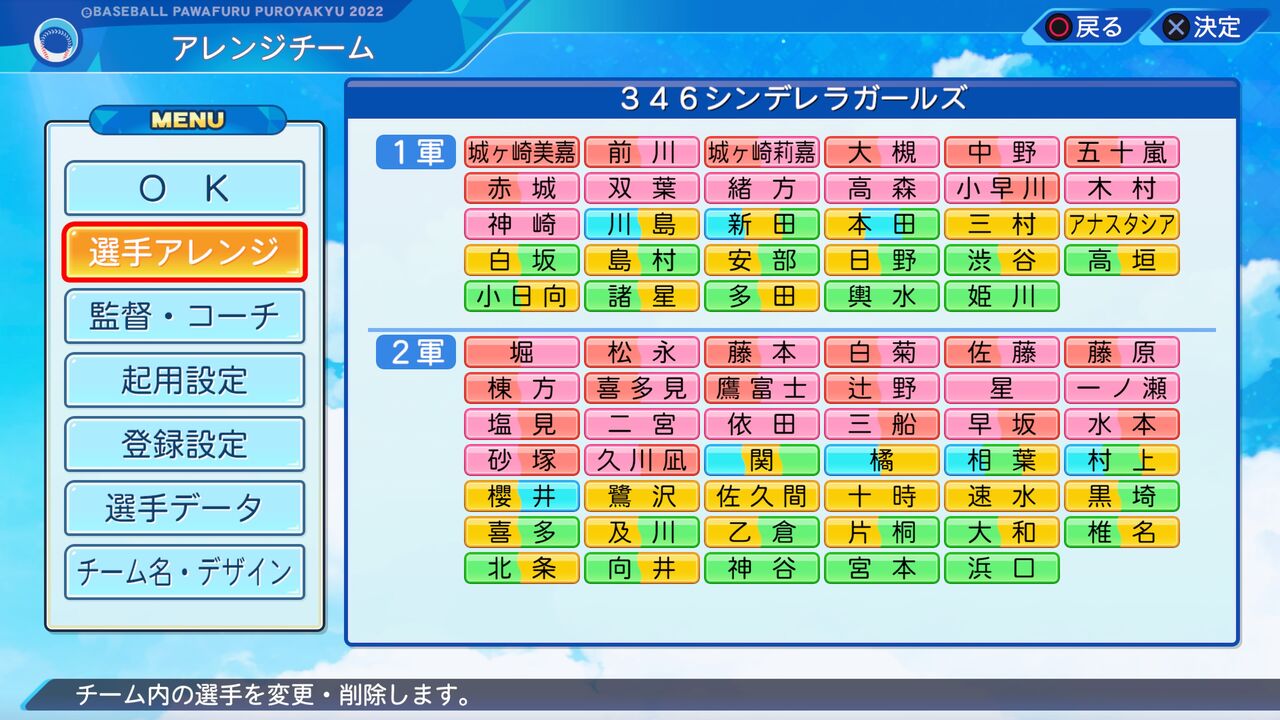 一部キャラをパワプロ2022版に変更(赤城(U149のメインメンバーのため)を除いたシンデレラプロジェクトメンバーはパワプロ2022版にしました。)のため更新しました。なお、2022年度版最終更新