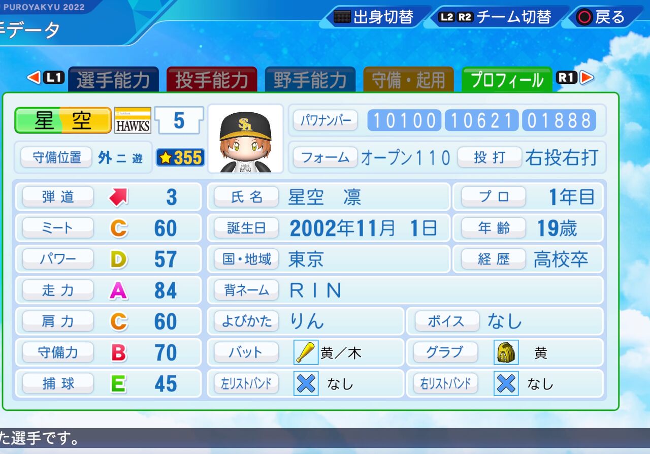 走力が高く、盗塁がうまい外野手です。以前作成したものはこちらから。
