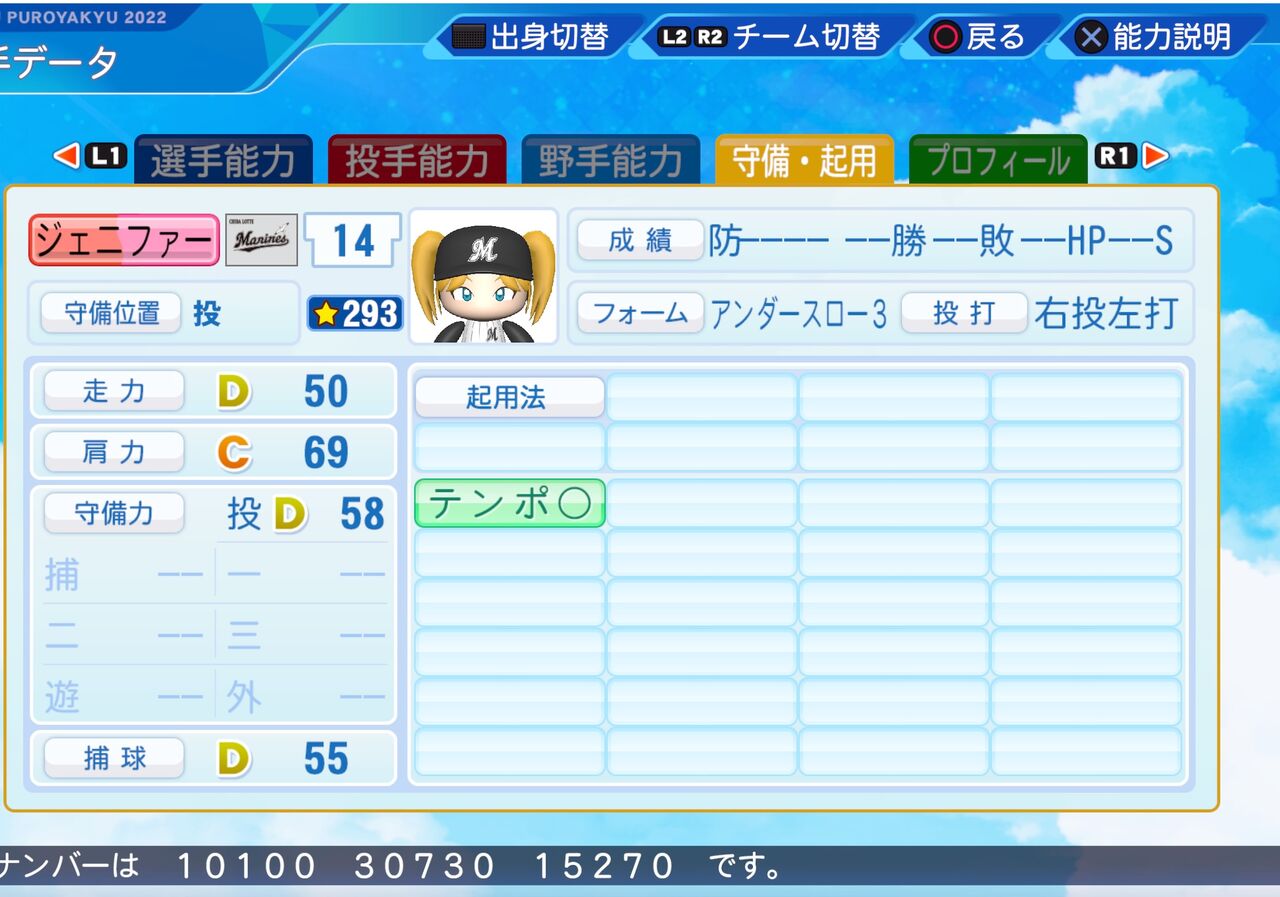 2022年08月26日 ジェニファー パワプロ2022 人助けが趣味のY.G.国際学園のスクールアイドルです。 アンダースローとしては球速が速い投手です。よびかたにじぇにふぁーが無かったため近い形のじぇいみーにしてます。パワター選手データの画像ファイル今日のプロ野球の結果DeNA 3 - 6 ヤクルト(DeNAは横浜スタジアムでの連勝がストップ 村上(ヤ)が通算150本塁打を達成)中日 5 - 2 阪神広島 3 - 4 巨人日本ハム 0 - 10 ソフトバンク(日本ハムは泥沼8連敗・・・)ロッテ 2 - 0 楽天オリックス 2 - 3 西武 「虹ヶ咲学園スクールアイドル同好会+スクフェスキャラ パワプロ2022」カテゴリの最新記事 タグ :#投手(先・リ)#スクフェス < 前の記事次の記事 > コメント コメントフォーム 名前 コメント 記事の評価 リセット リセット 顔 星 情報を記憶 コメントを投稿する