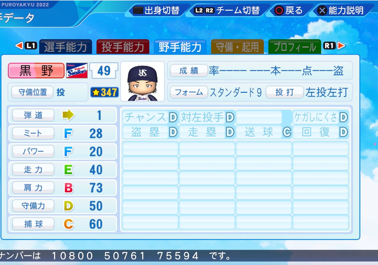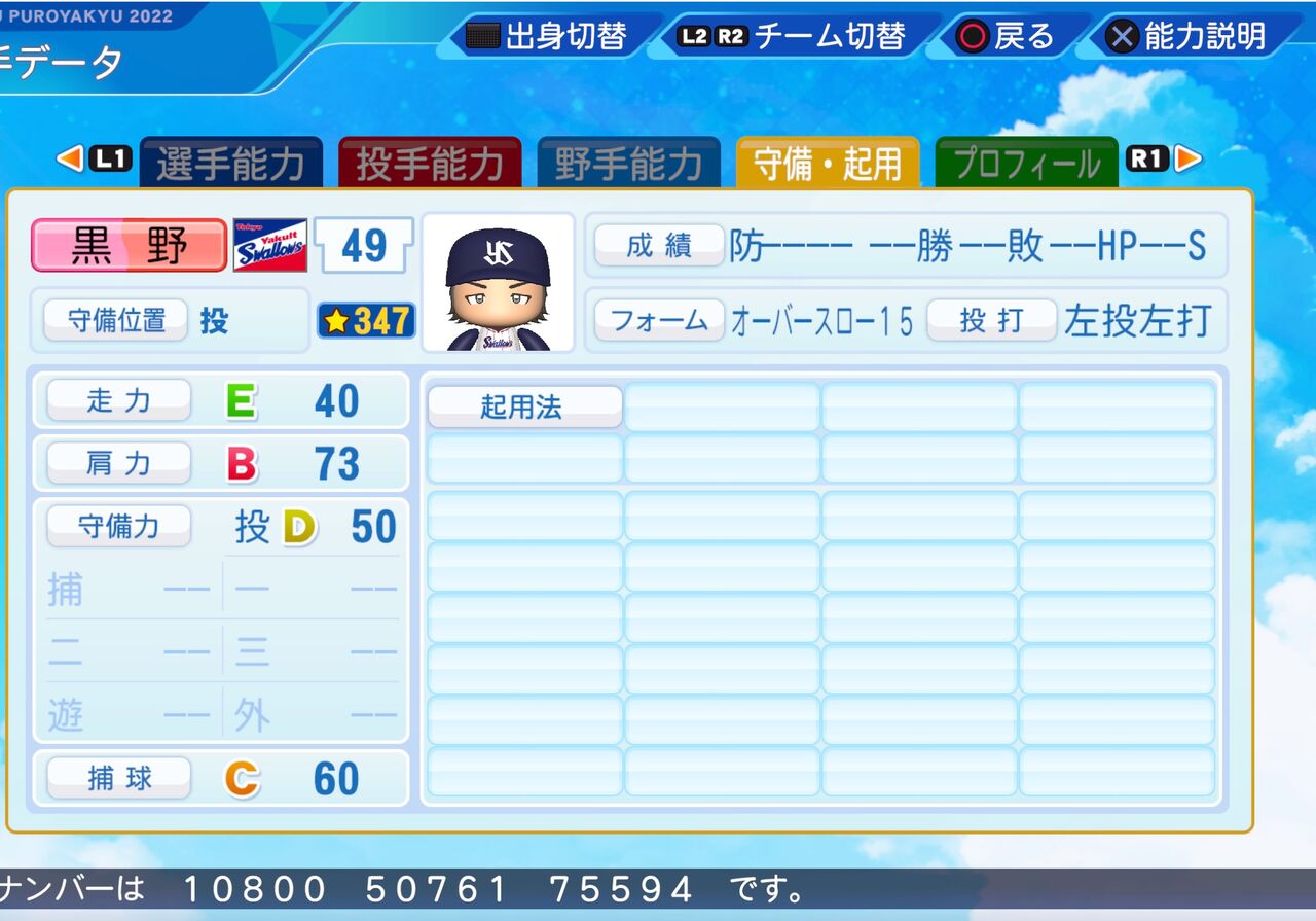 コントロールが高く、クロスファイヤー持ちのリリーフ投手です。以前作成したものはこちらから。