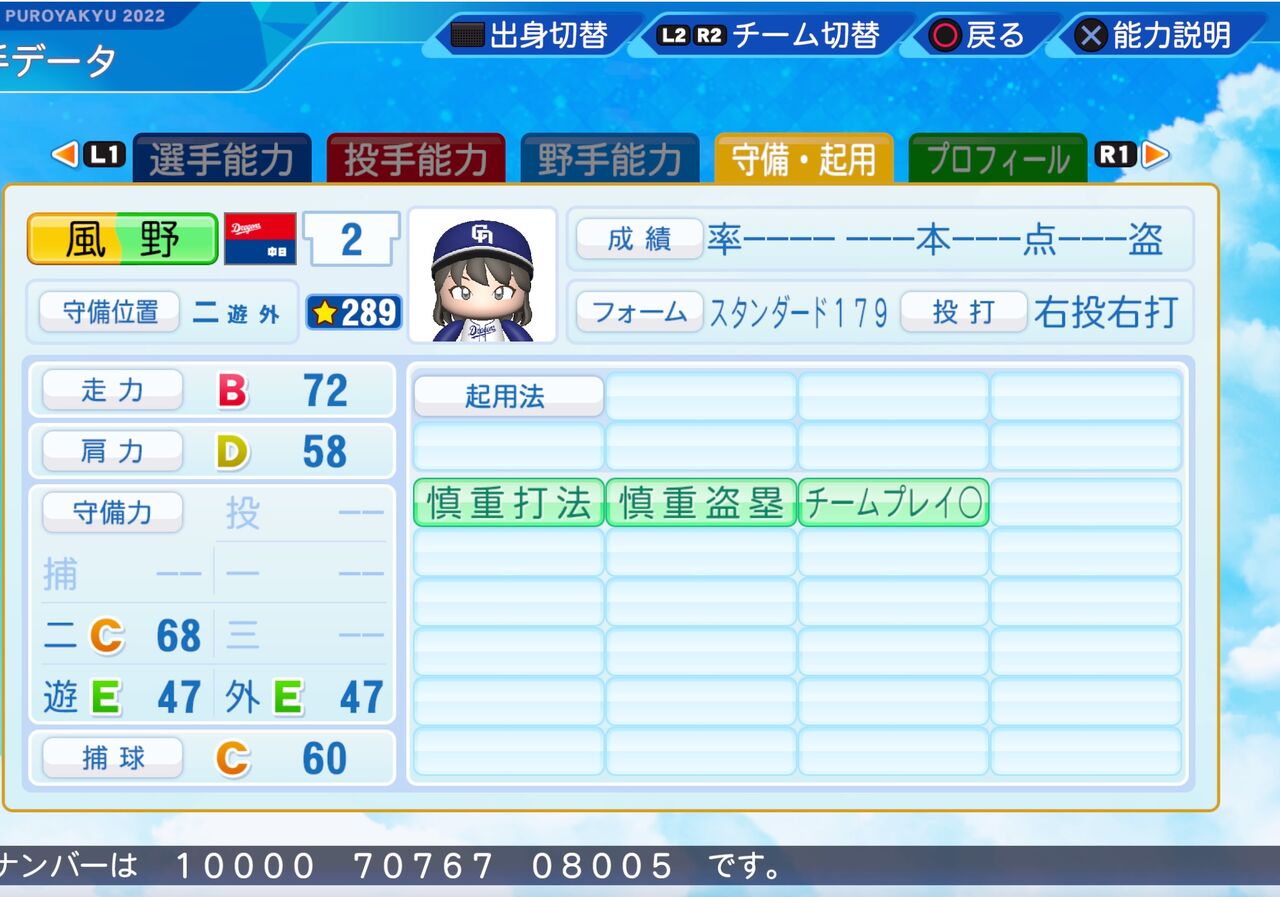 走力が高く、ストレートに強い二塁手です。よびかたにかざのやひおりはなかったためひおきにしてます。以前作成したものはこちらから。