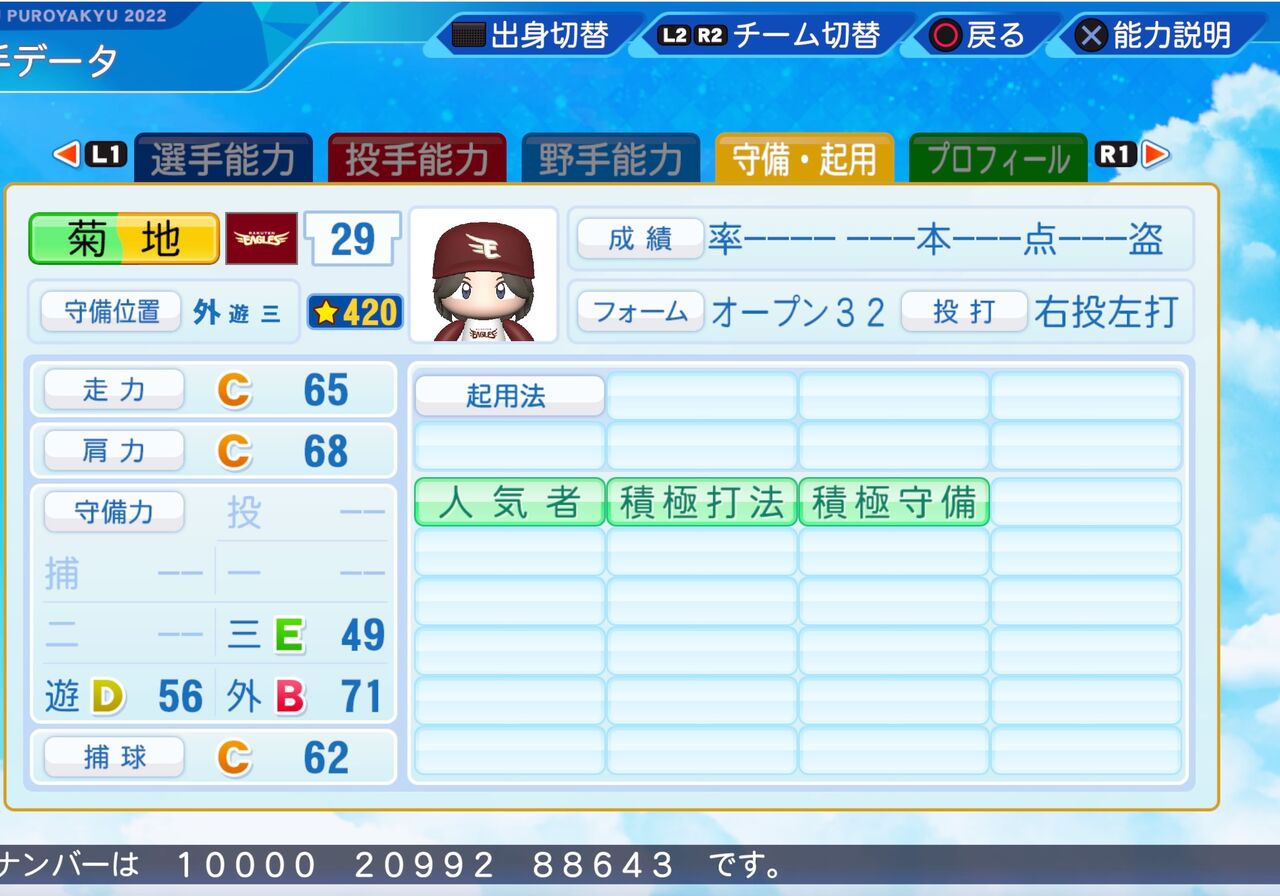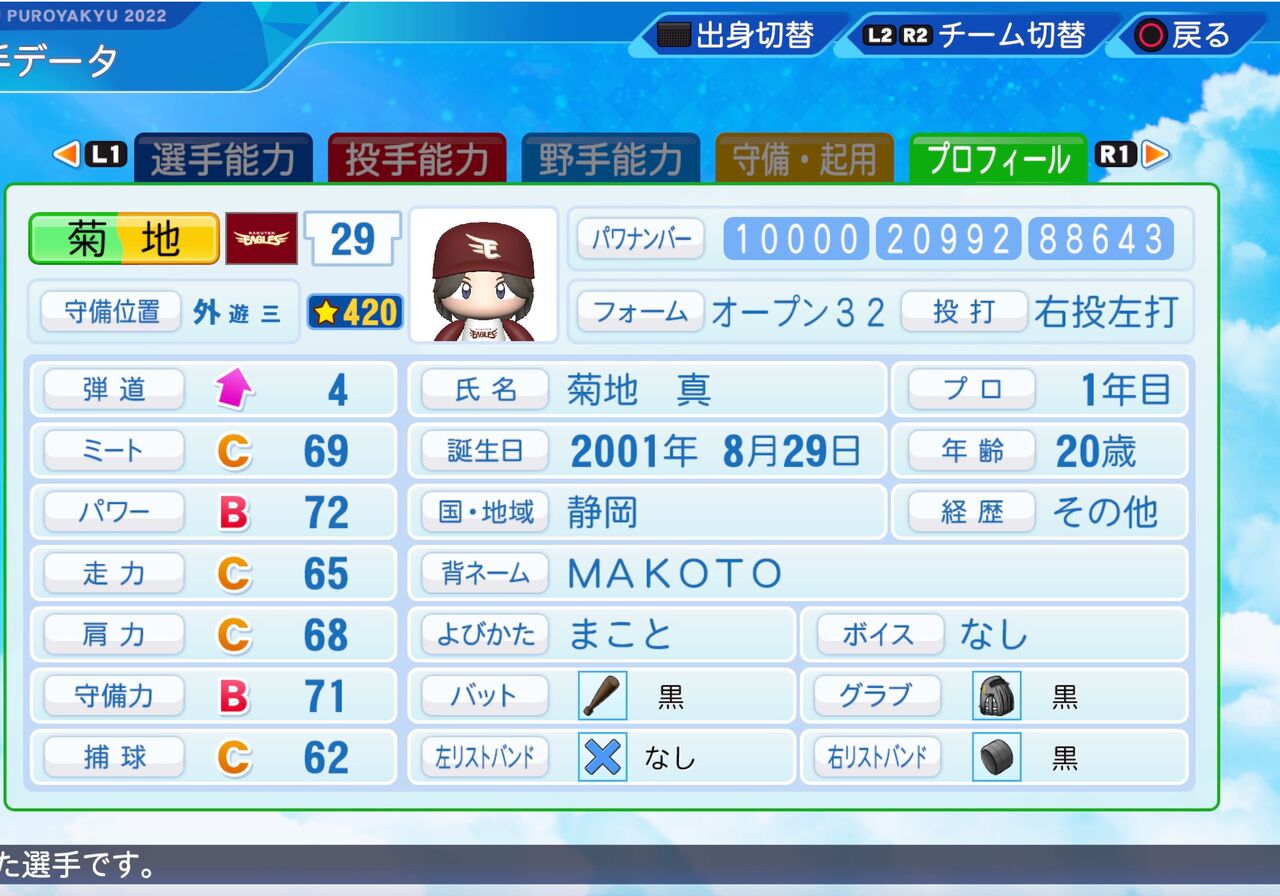 全体的に能力が高めの外野手です。以前作成したものはこちらから。