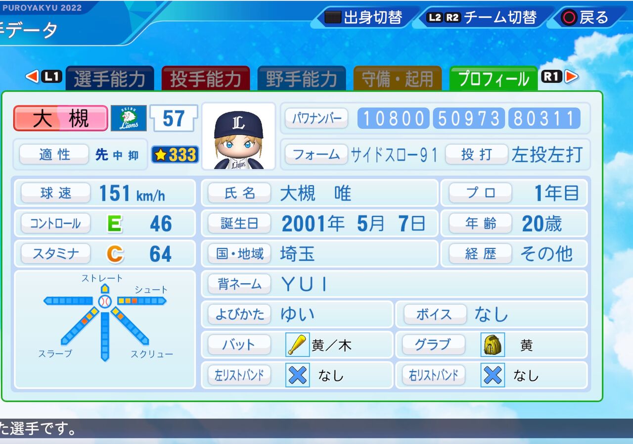 尻上がりととクロスファイヤー持ちの投手です。以前作成したものはこちらから。