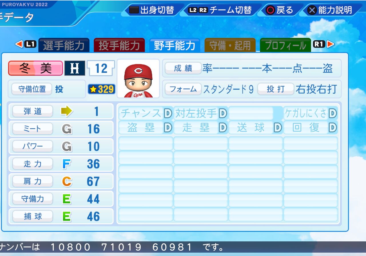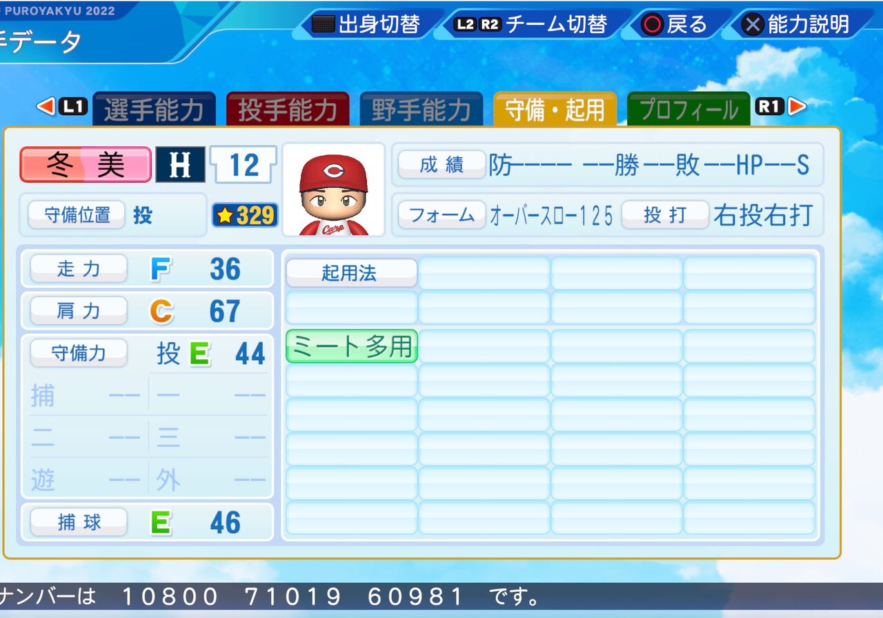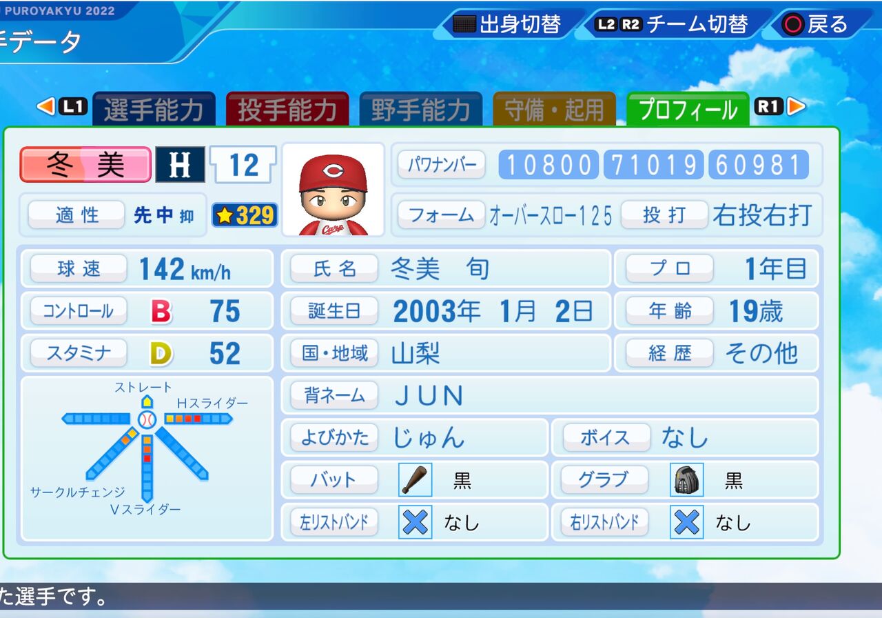コントロールが高く、真っスラのストレート持ちの投手です。以前作成したものはこちらから。
