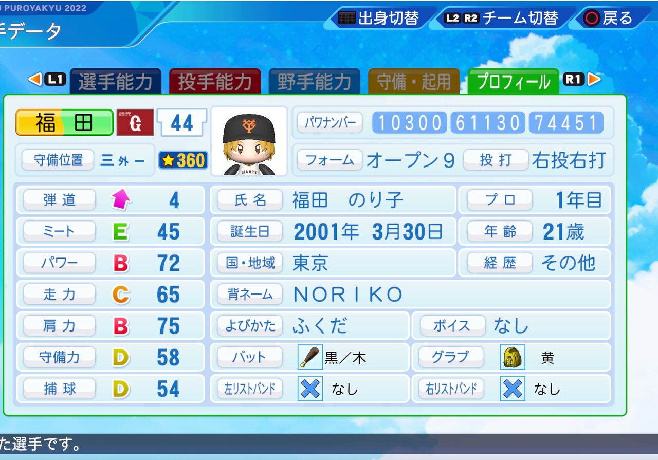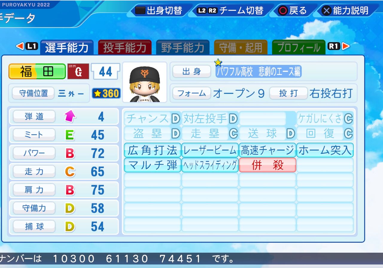 2023年01月06日 福田 のり子 パワプロ2022版 格闘技が大好きなボーイッシュなアイドルです。 パワーと肩力が高く、広角に打ち分けることができる三塁手です。以前作成したものはこちらから。パワター選手データの画像ファイル 「ミリオンライブ パワプロ2022」カテゴリの最新記事 タグ :#三塁手#アイマス赤属性#ミリオンスターズ(765プロ) < 前の記事次の記事 > コメント コメントフォーム 名前 コメント 記事の評価 リセット リセット 顔 星 情報を記憶 コメントを投稿する
