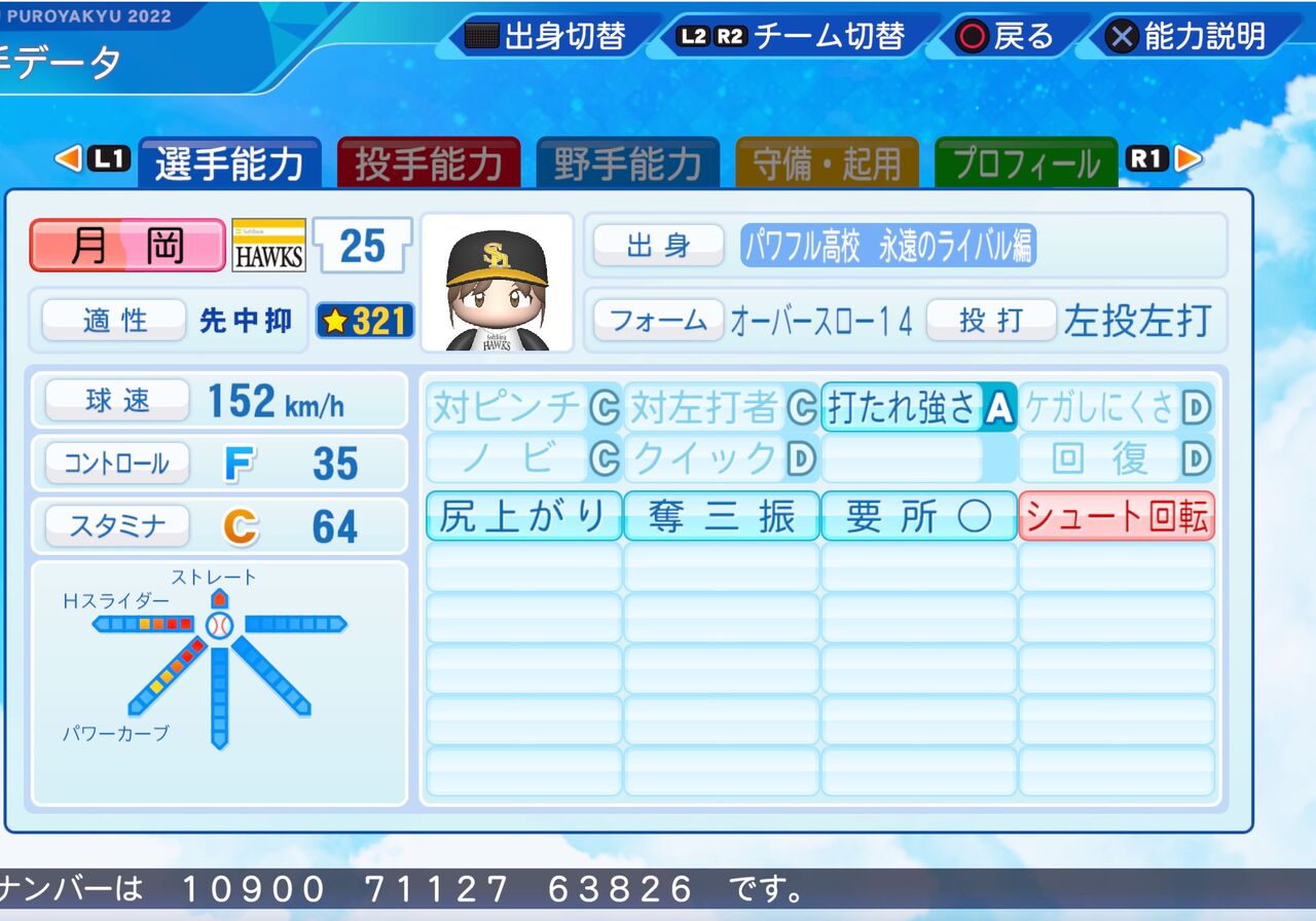 コントロールは低いが、打たれ強く球速が速い左腕投手です。以前作成したものはこちらから。