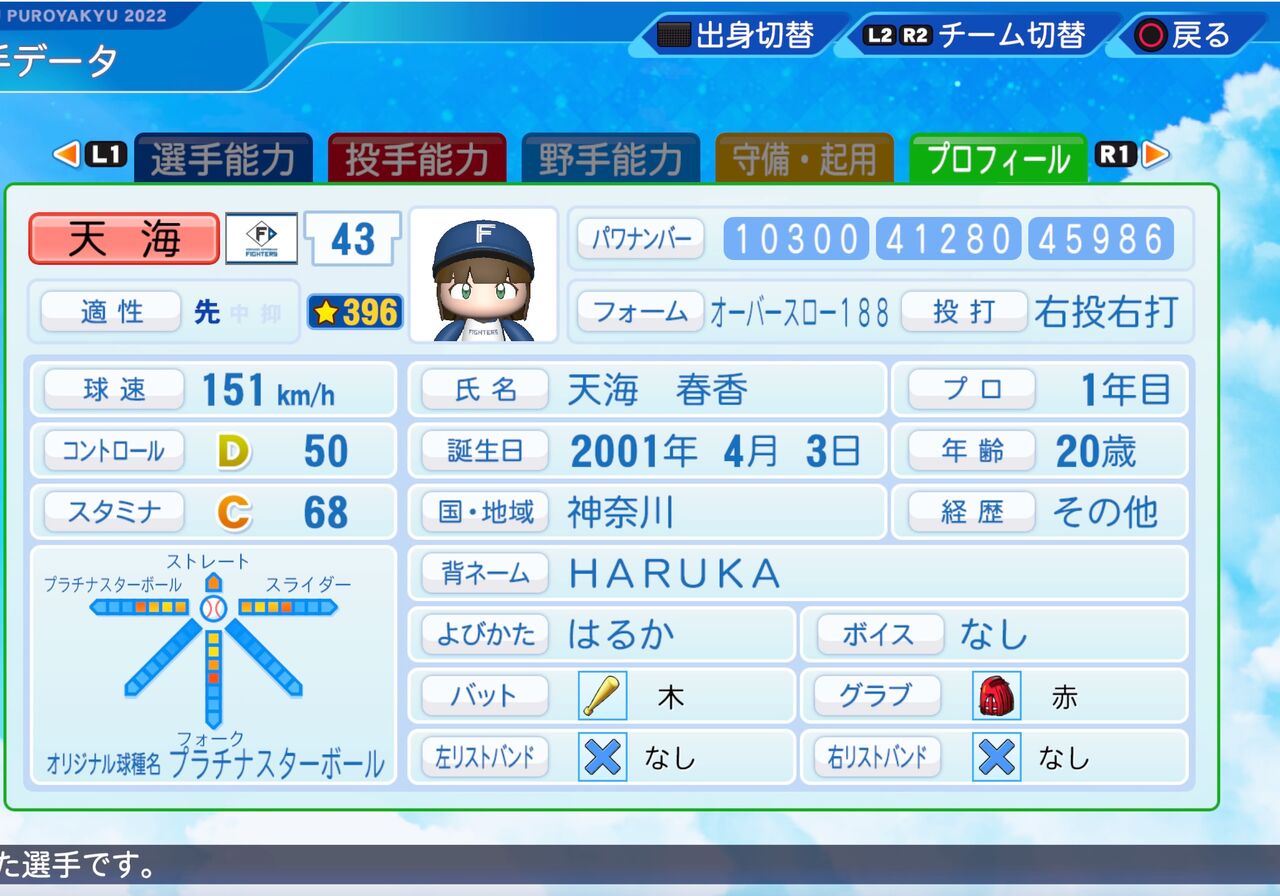 打たれ強く、バランスのいい能力の先発投手です。以前作成したものはこちらから。