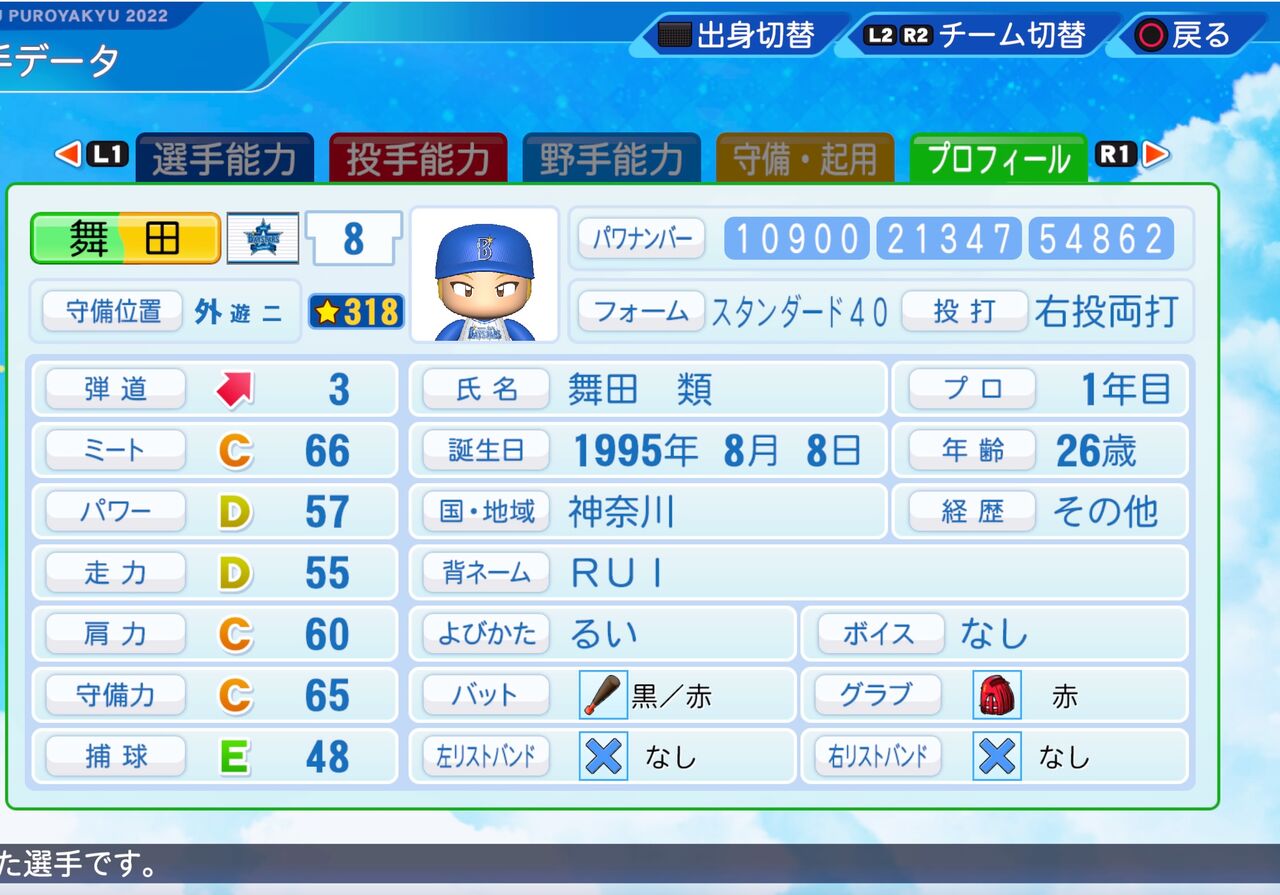 チャンスに強くバランスのいい能力のスイッチヒッターです。以前作成したものはこちらから。