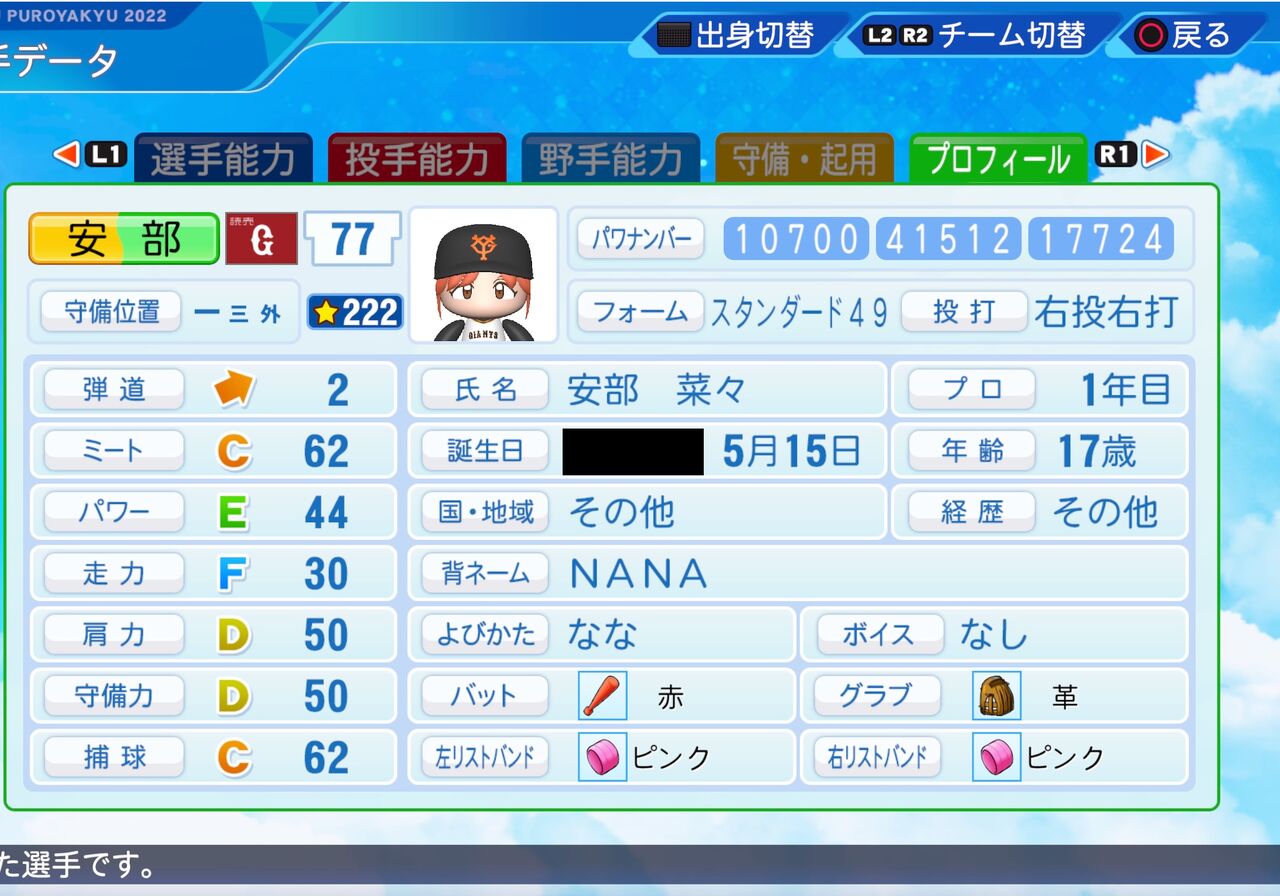 ケガしやすいが代打や満塁のときに実力を発揮する一塁手です。なお日本出身と思われるためLIVEパワプロにアップロードしてます。以前作成したものはこちらから。