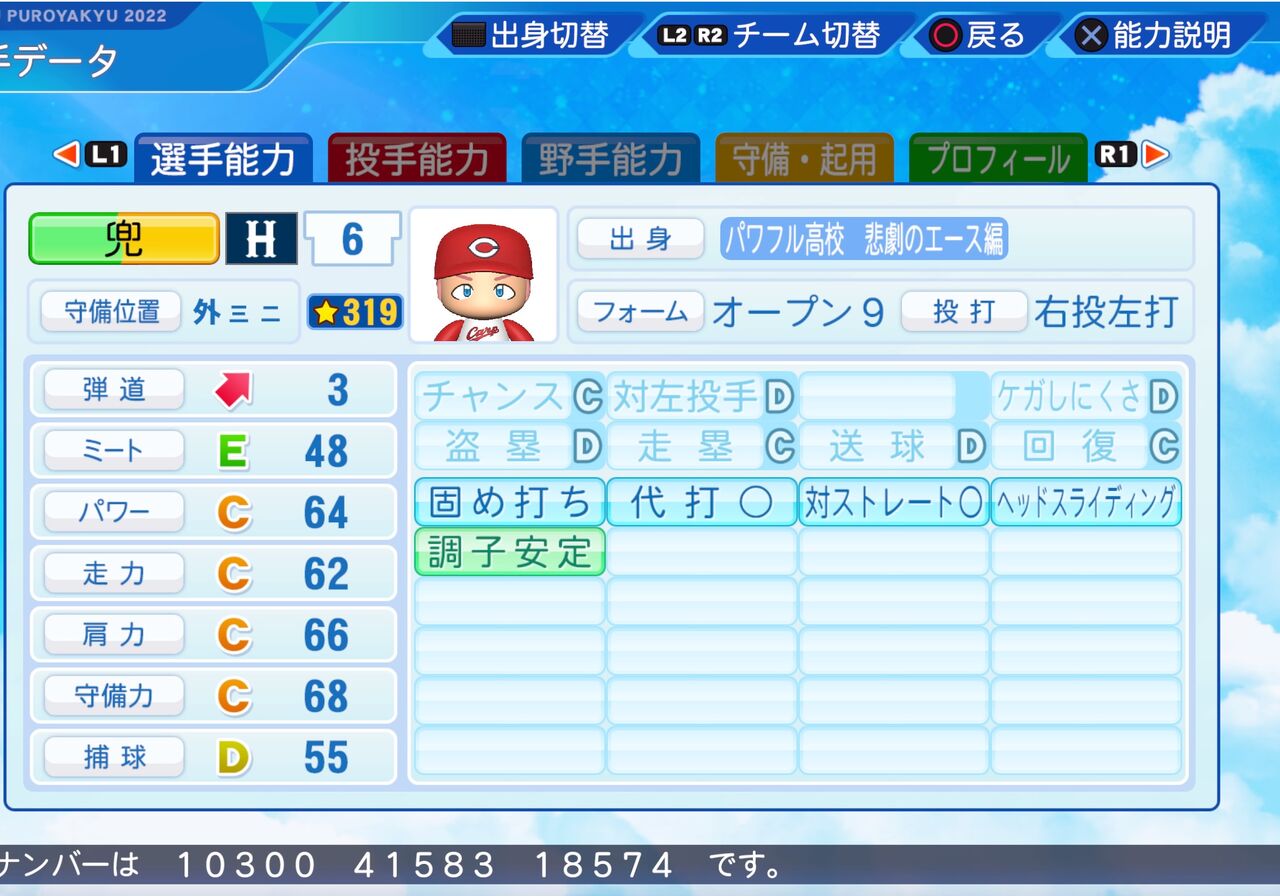 ストレートを打つのが得意な外野手です。以前作成したものはこちらから。