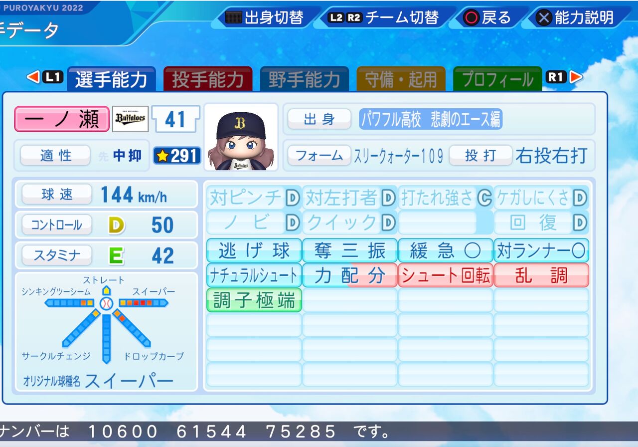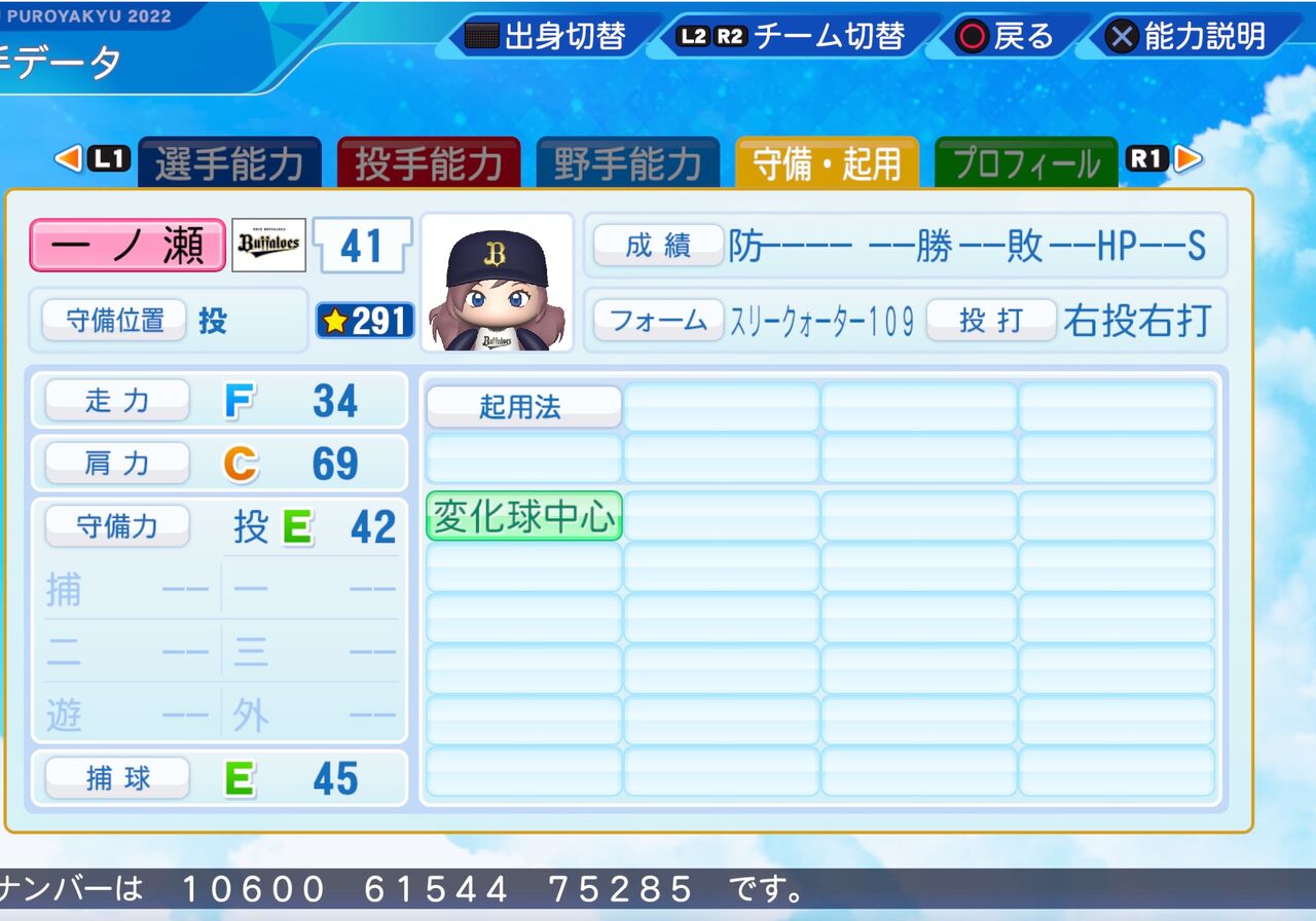 多彩な変化球が武器のリリーフ投手です。以前作成したものはこちらから。