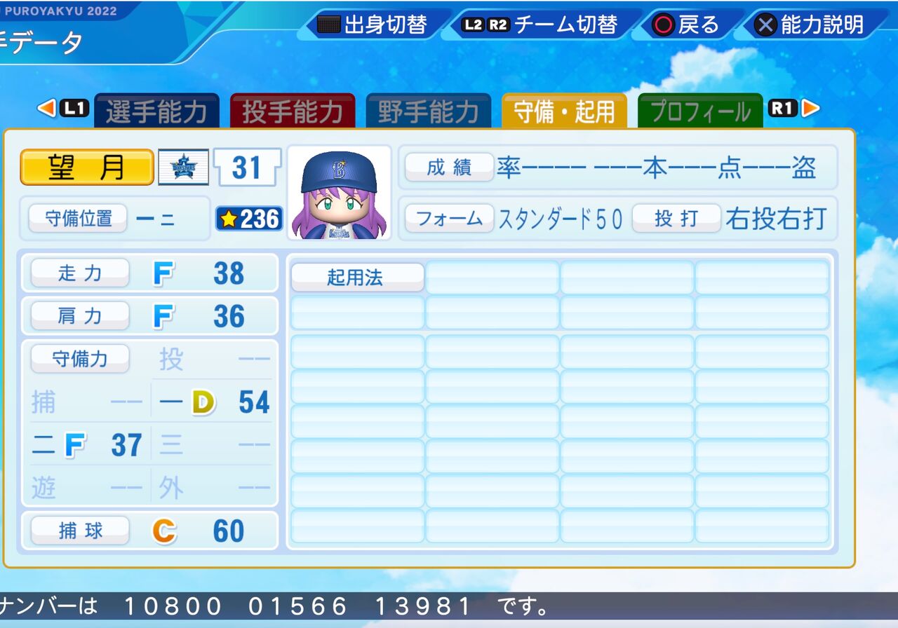 チャンス時など特定の場面で打撃能力が上がる一塁手です。以前作成したものはこちらから。