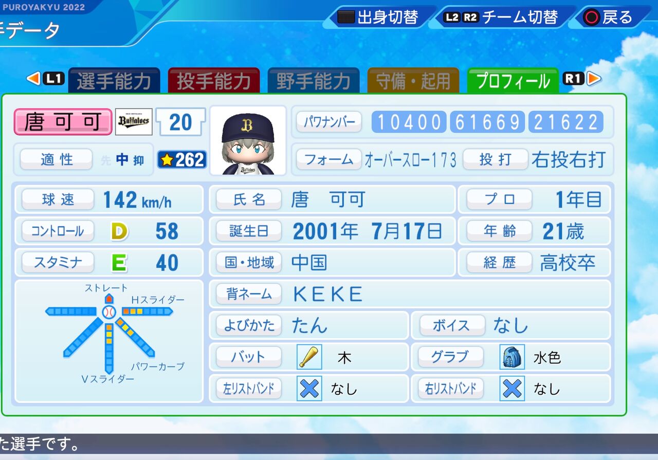 球持ち〇、真っスラ持ちの投手です。以前作成したものはこちらから。