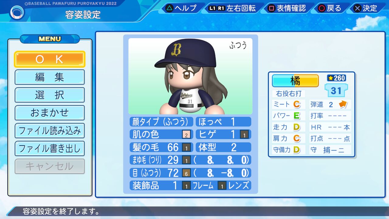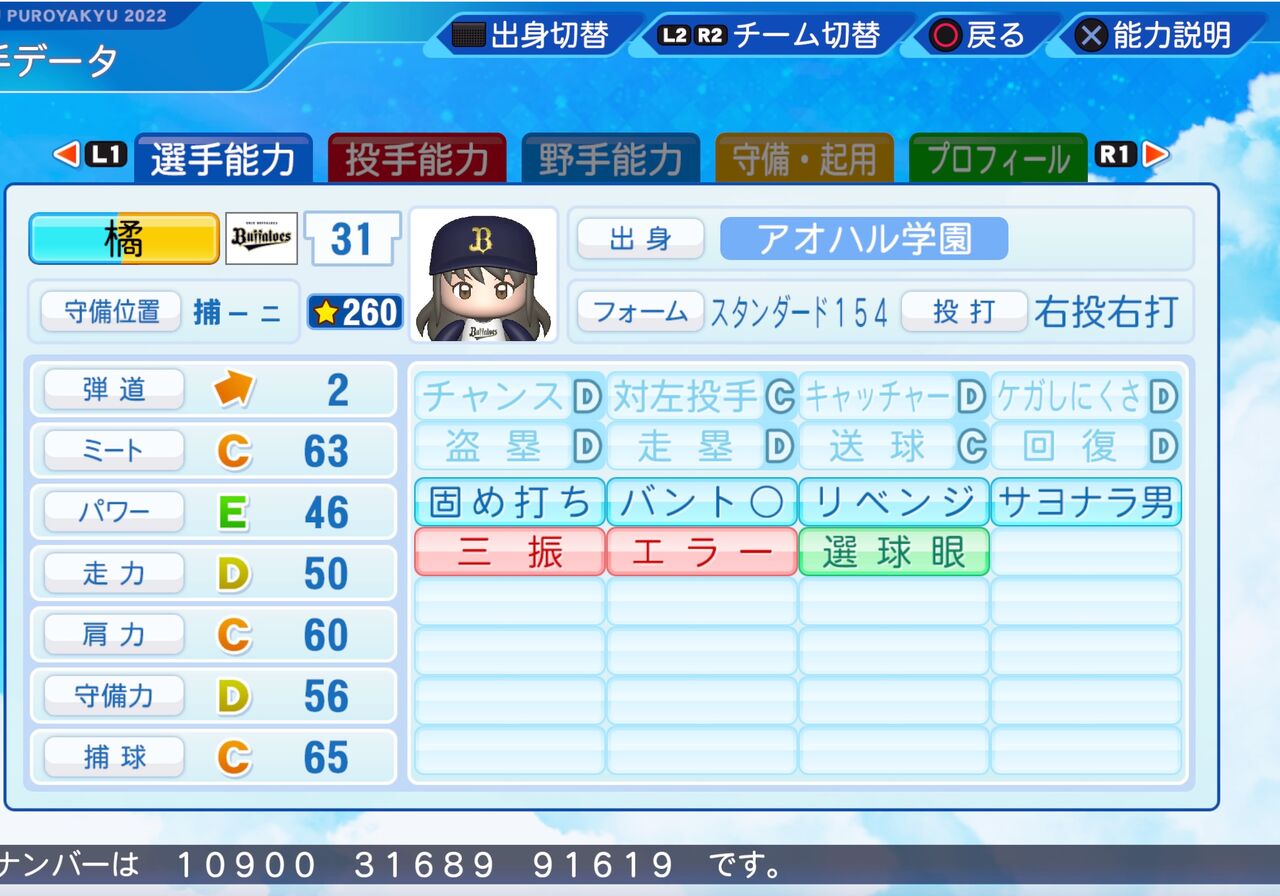 ミートと捕球がやや高めの捕手です。以前作成したものはこちらから。