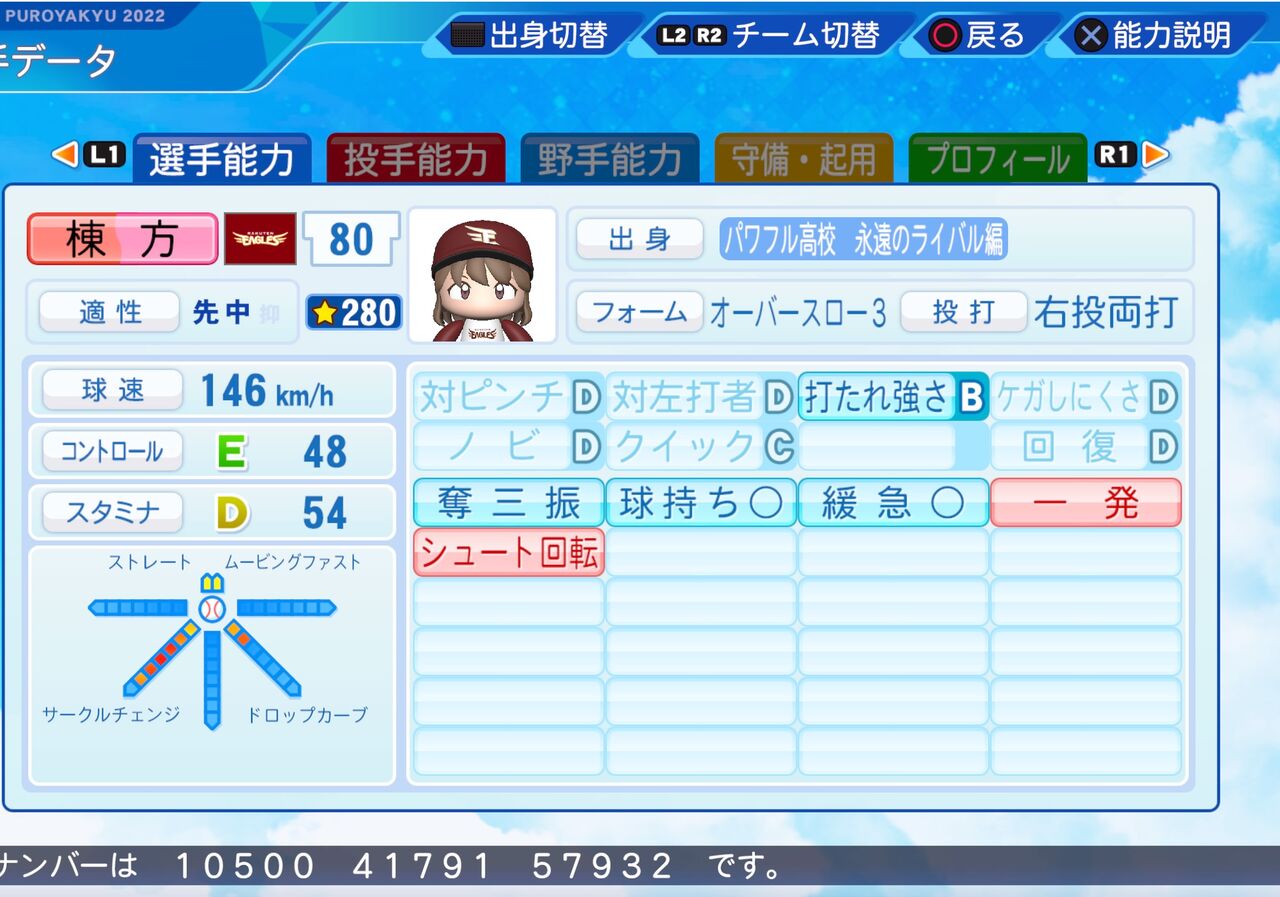 サークルチェンジが武器の投手です。以前作成したものはこちらから。