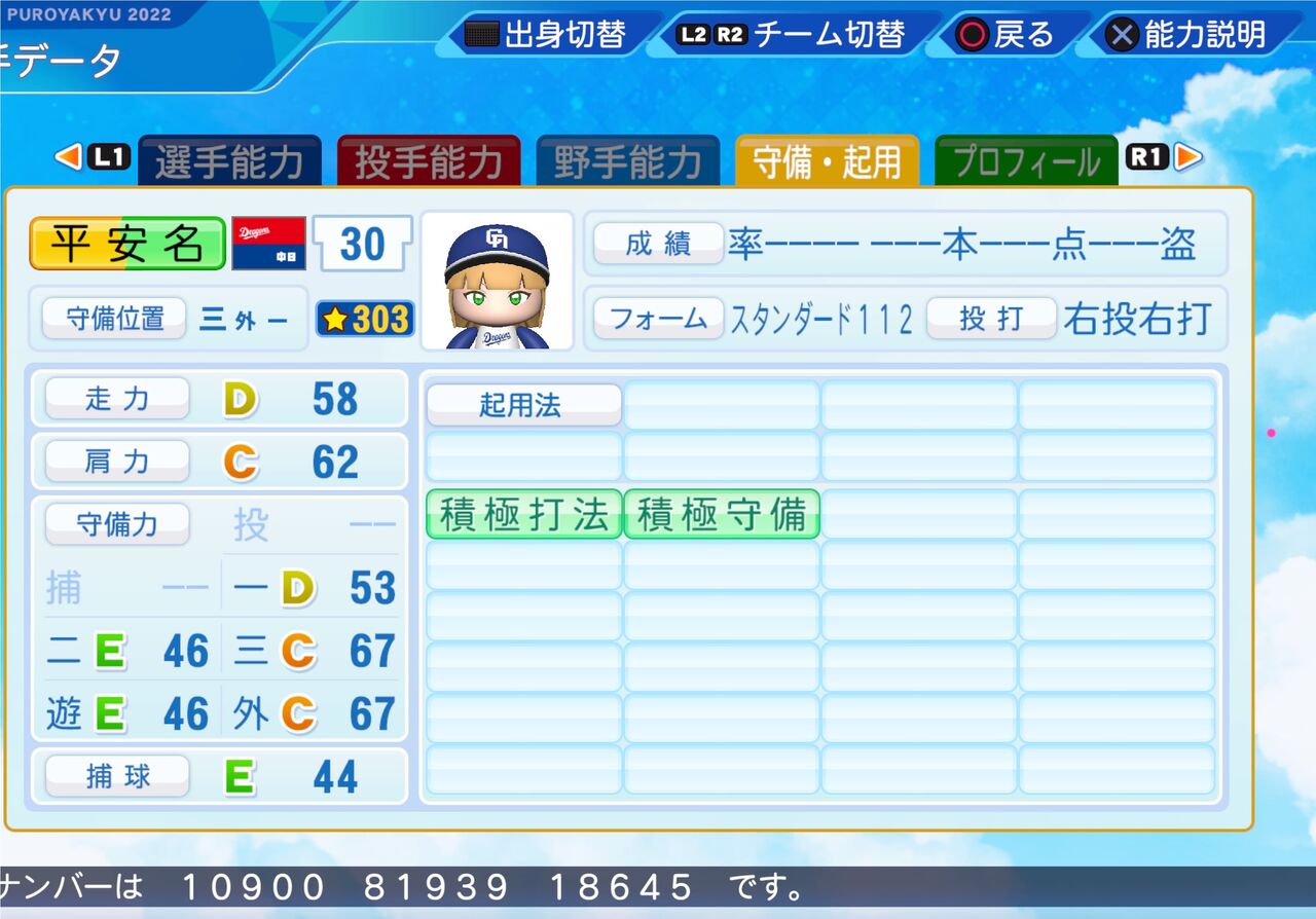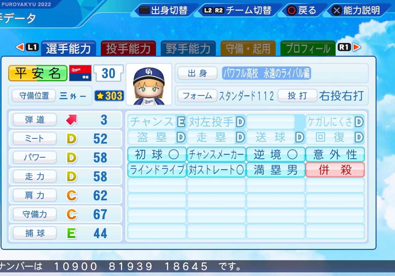 意外性持ちのバランスのいい能力のユーティリティープレーヤーです。以前作成したものはこちらから。