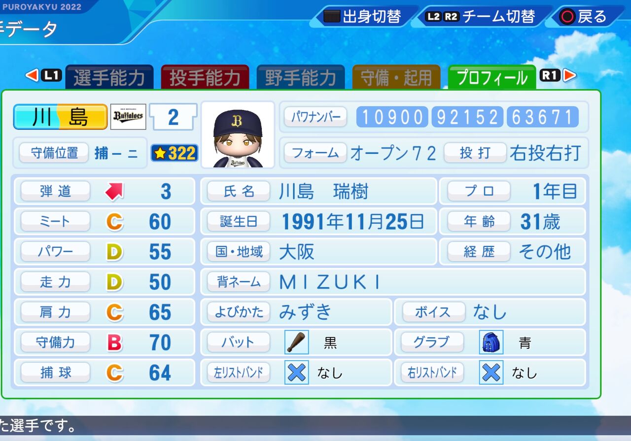 守備力が高く、左投手に強い捕手です。以前作成したものはこちらから。