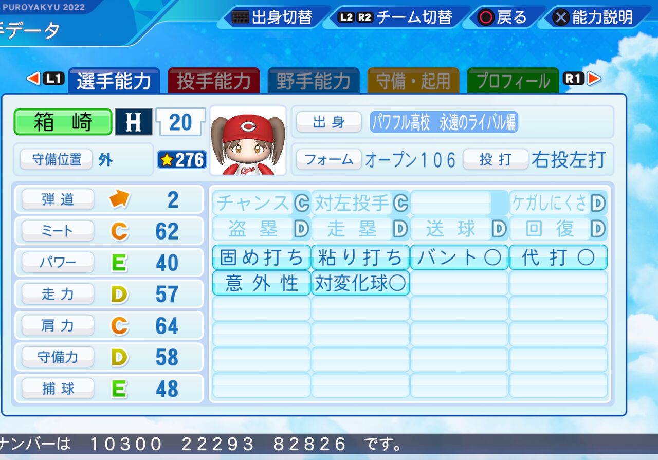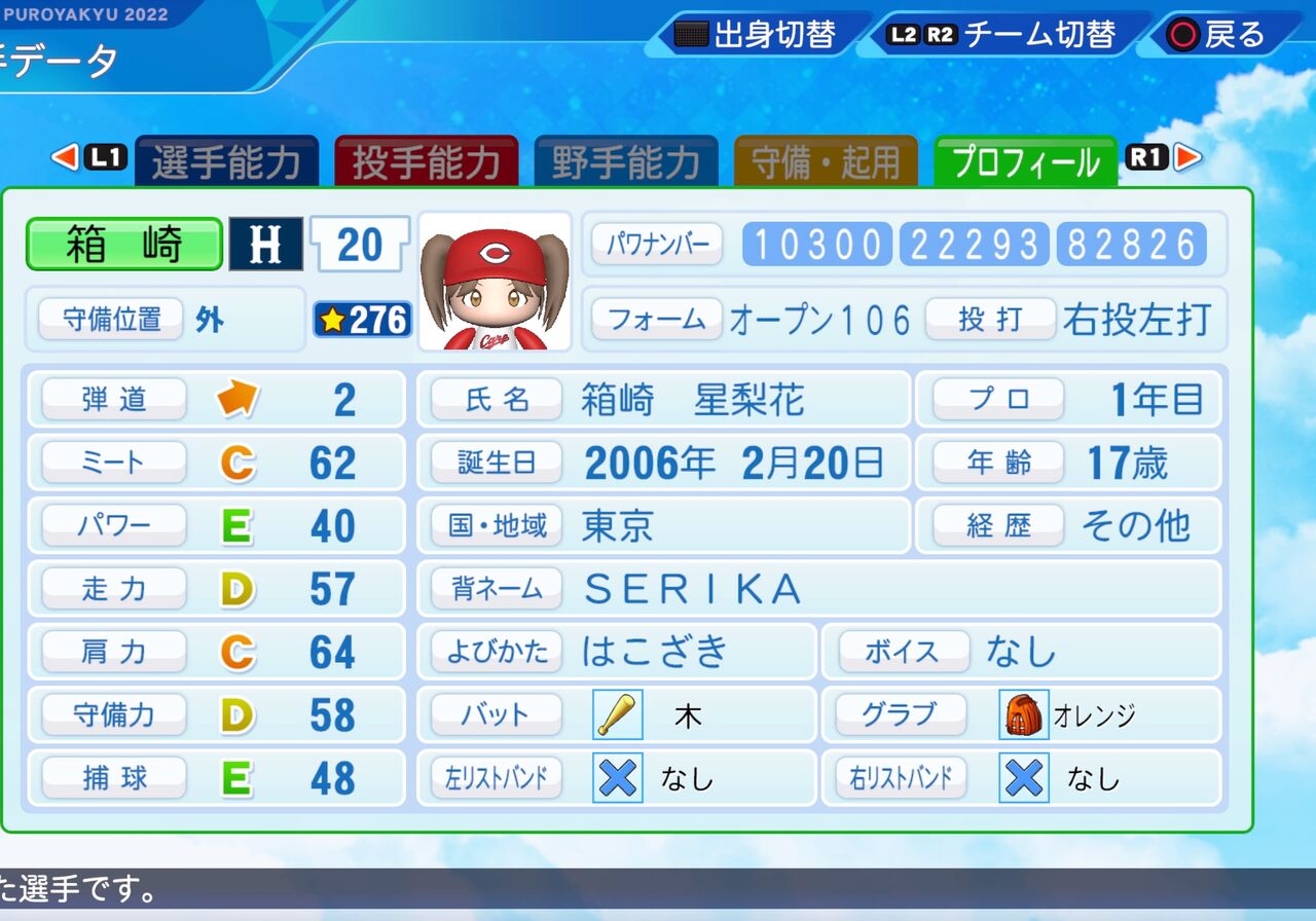 2024年04月05日 箱崎 星梨花 パワプロ2022版 純粋無垢な箱入り娘のアイドルです。 ミートと肩力がやや高めの外野手です。以前作成したものはこちらから。打撃フォーム 戸柱(DeNA)パワター選手データの画像ファイル 「ミリオンライブ パワプロ2022」カテゴリの最新記事 タグ :#外野手#ミリオンスターズ(765プロ)#一期生(ミリオンライブ)#アイマス黄属性 < 前の記事次の記事 > コメント コメントフォーム 名前 コメント 記事の評価 リセット リセット 顔 星 情報を記憶 コメントを投稿する