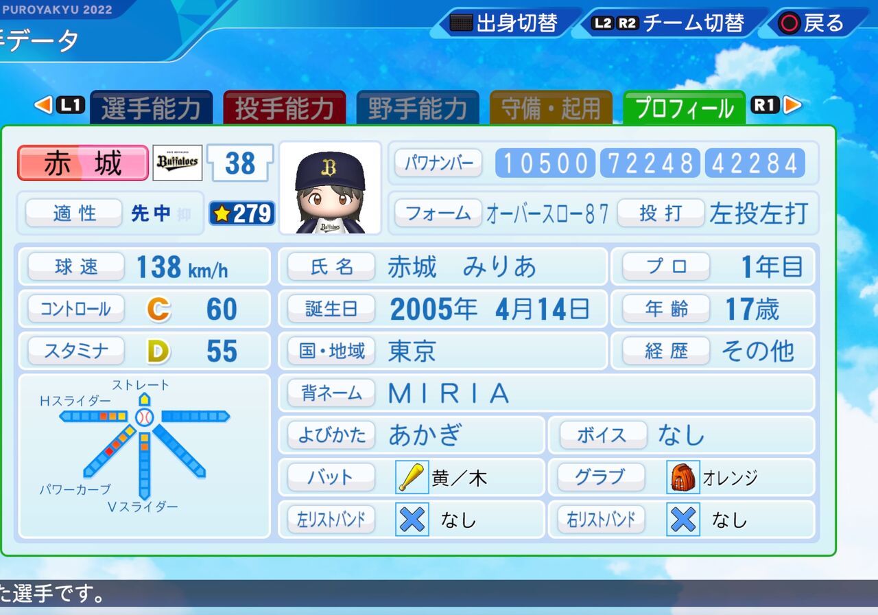 打たれ強く、ノビのある速球が武器の投手です。以前作成したものはこちらから。