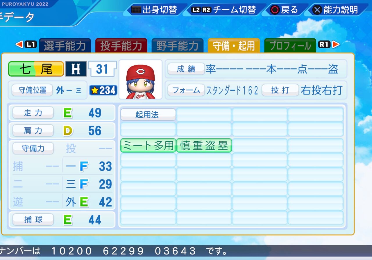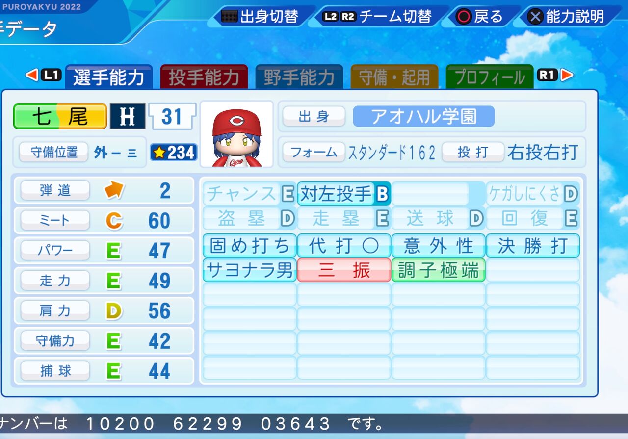 2024年04月23日 七尾 百合子 パワプロ2022版 読書が大好きな文学少女のアイドルです。 左投手に強い外野手です。以前作成したものはこちらから。打撃フォーム 大山(阪神)パワター選手データの画像ファイル 「ミリオンライブ パワプロ2022」カテゴリの最新記事 タグ :#外野手#ミリオンスターズ(765プロ)#一期生(ミリオンライブ)#アイマス赤属性 < 前の記事次の記事 > コメント コメントフォーム 名前 コメント 記事の評価 リセット リセット 顔 星 情報を記憶 コメントを投稿する