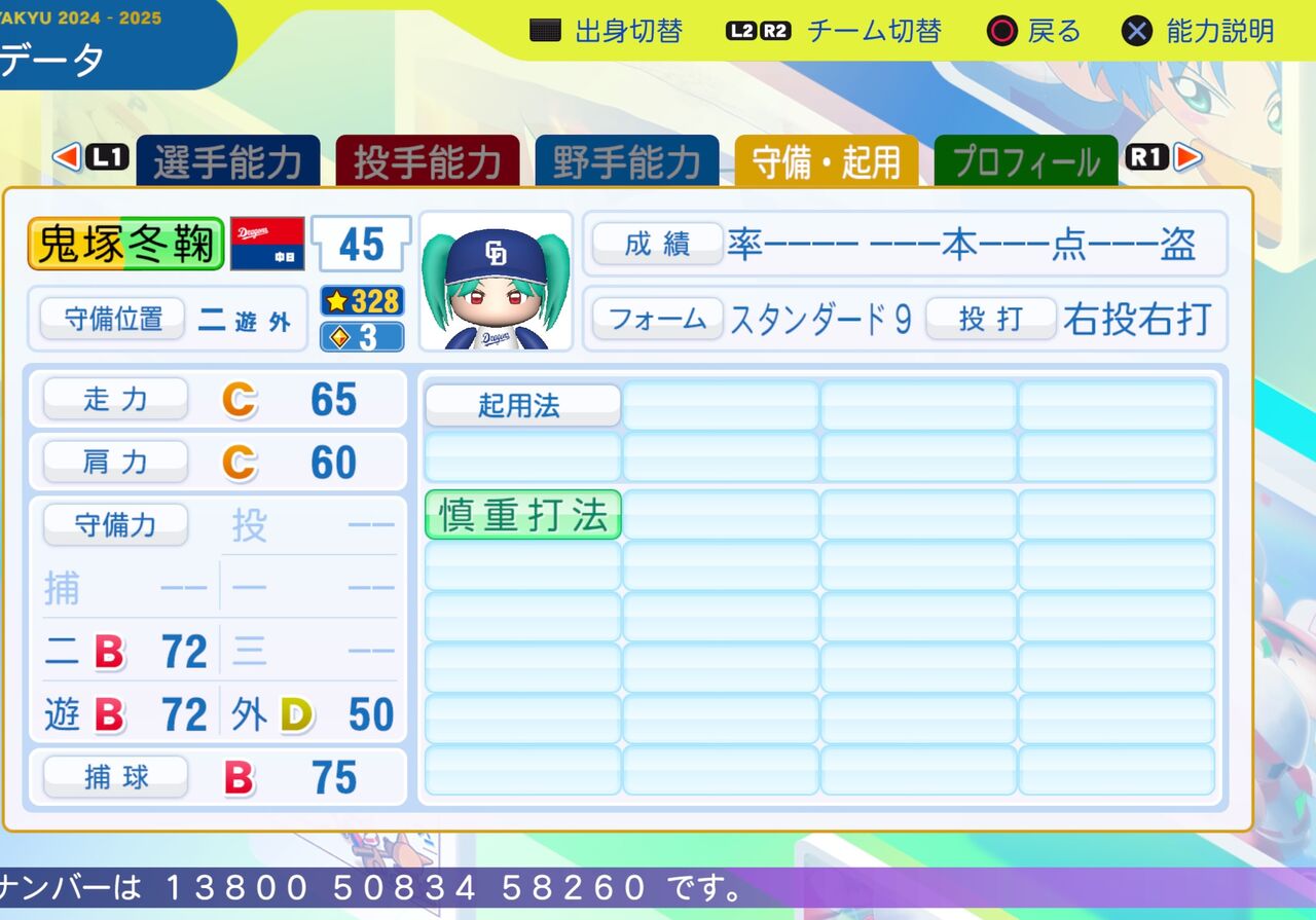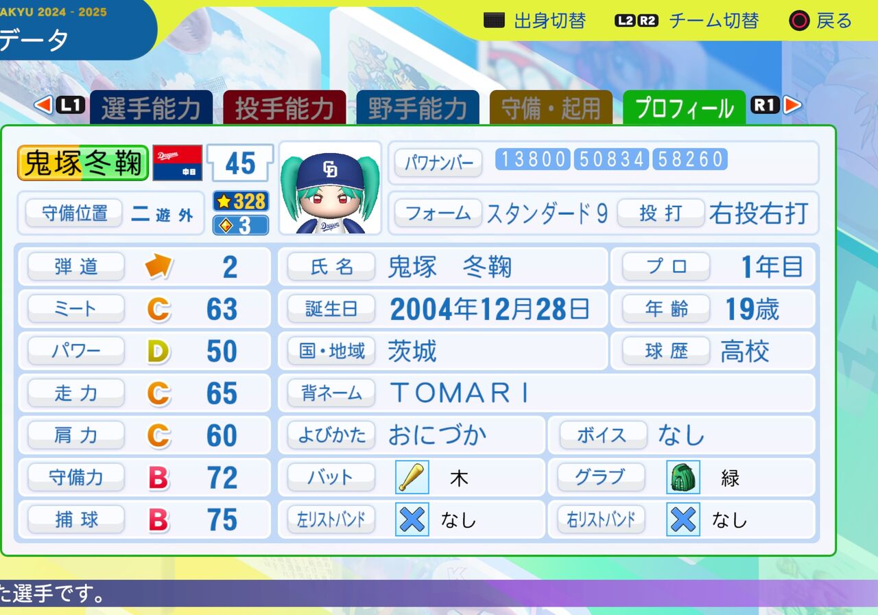 2025年03月18日 鬼塚 冬毬 パワプロ2024-2025版 鬼塚夏美の妹で、常に効率的な行動を心がけているスクールアイドルです。 守備力が高く、流し打ちが得意な二塁手です。なお、毬の字がなかったため鞠にしてます。パワター選手データの画像ファイル 「ラブライブスーパースター パワプロ」カテゴリの最新記事 タグ :#二塁手#Liella! < 前の記事次の記事 > コメント コメントフォーム 名前 コメント 記事の評価 リセット リセット 顔 星 情報を記憶 コメントを投稿する