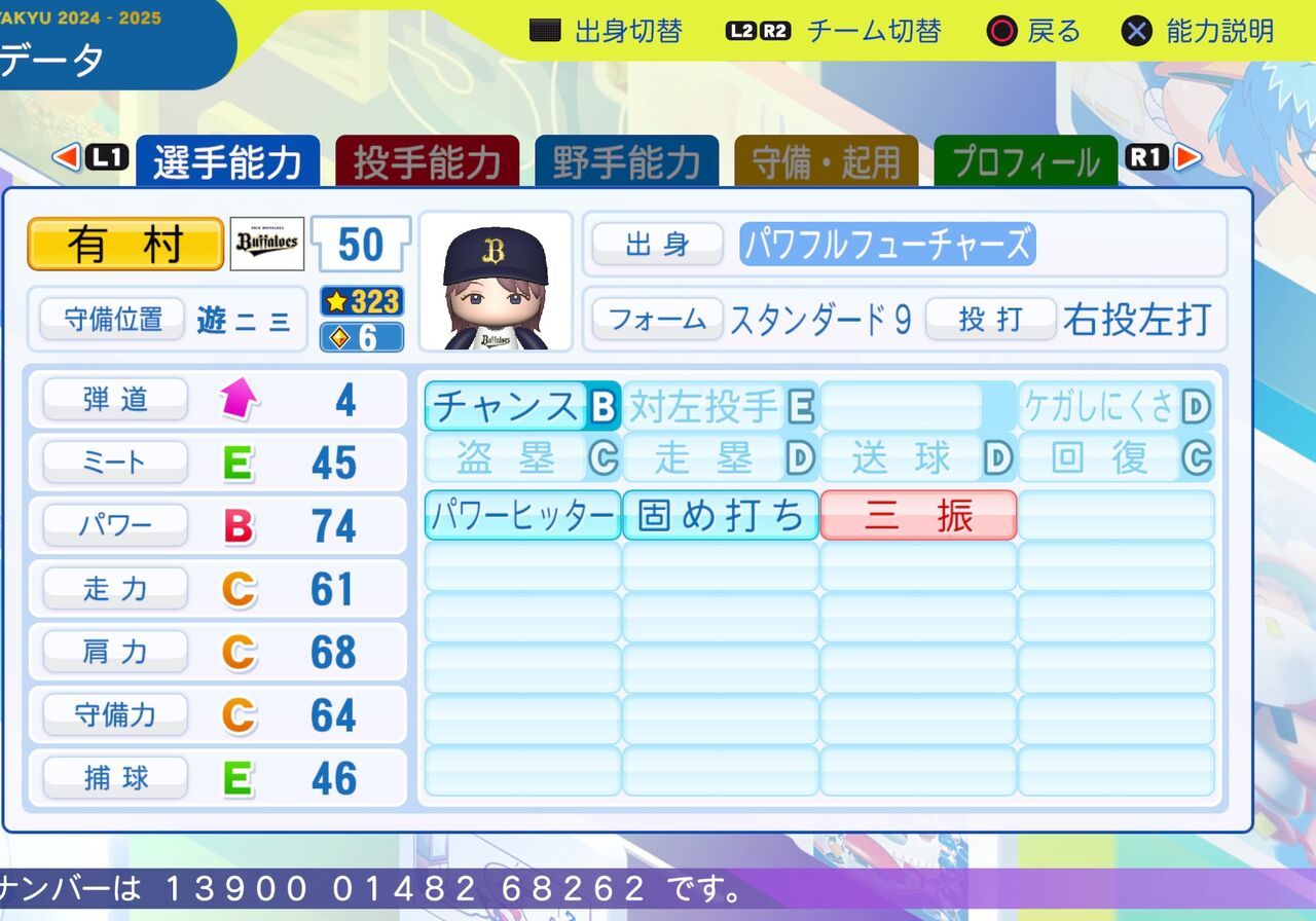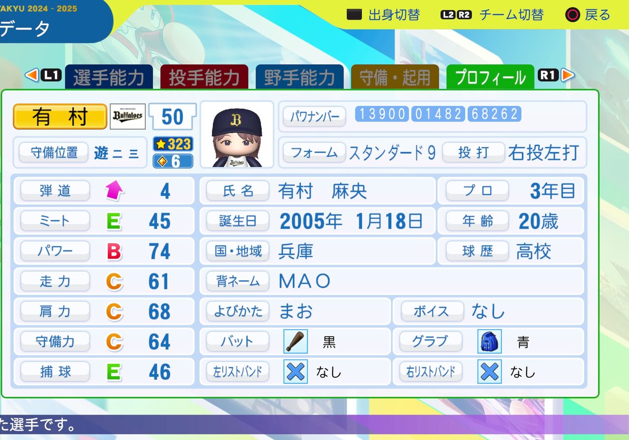 2025年11月05日 有村 麻央 パワプロ2024-2025版 カッコいいアイドルを目指す小さな王子様(リトルプリンス)として慕われているアイドルです。 チャンスに強く、パワーが高めの遊撃手です。パワター 「学マス パワプロ」カテゴリの最新記事 タグ :#遊撃手#初星学園 < 前の記事次の記事 > コメント コメントフォーム 名前 コメント 記事の評価 リセット リセット 顔 星 情報を記憶 コメントを投稿する
