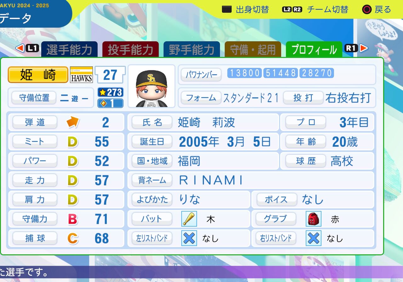 2025年12月03日 姫崎 莉波 パワプロ2024-2025版 しっかりしたもので優しく、面倒見のいいみんなのお姉さんのアイドルです。 守備力が高く、流し打ちが得意な二塁手です。パワター 「学マス パワプロ」カテゴリの最新記事 タグ :#初星学園#二塁手 < 前の記事次の記事 > コメント コメントフォーム 名前 コメント 記事の評価 リセット リセット 顔 星 情報を記憶 コメントを投稿する